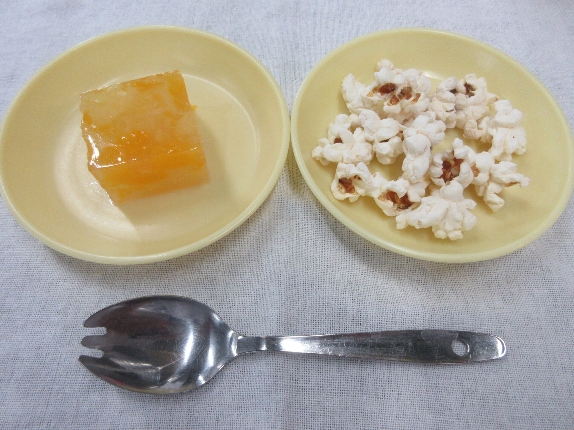 ・フルーツゼリー(ポップコーンは以上児さんのみです)