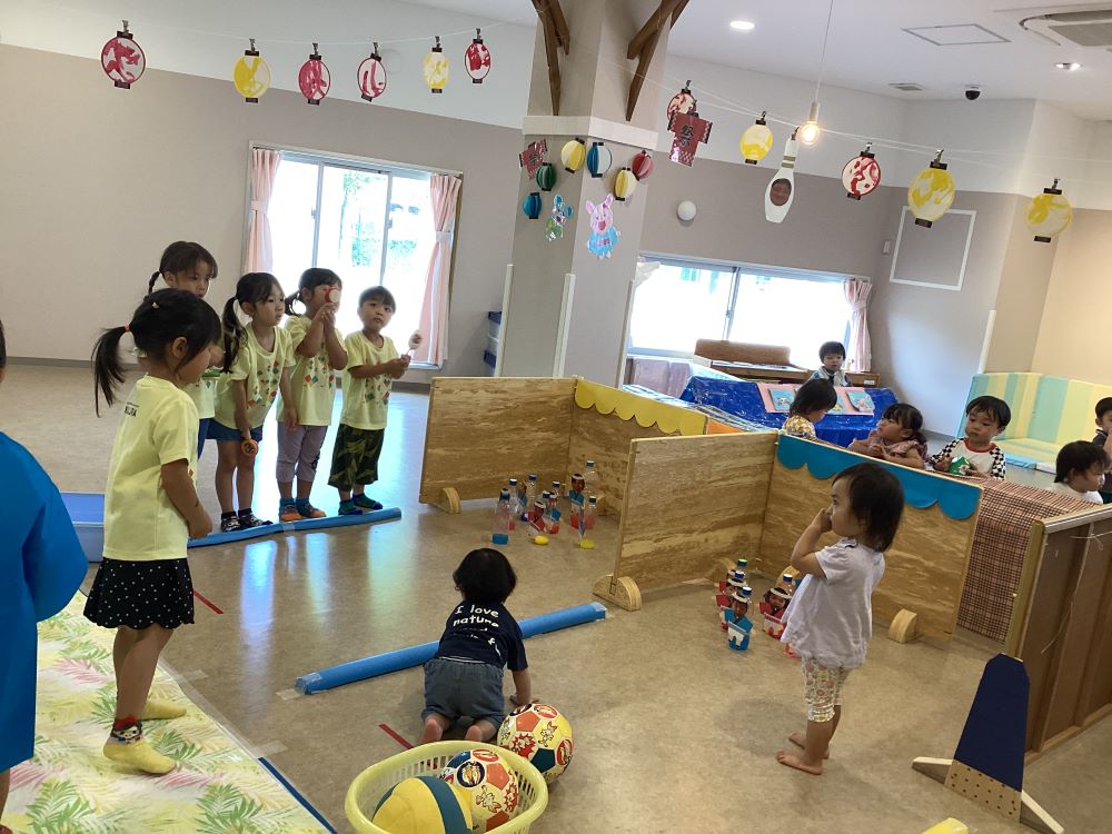 1歳児 だいちチームは、『ボーリング』です ↓