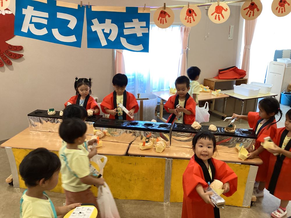 3歳児 にじチームは、『たこ焼き屋さん』に変身!