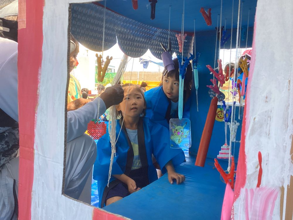千本くじびきは、子ども達の手作り玩具を景品にしました。