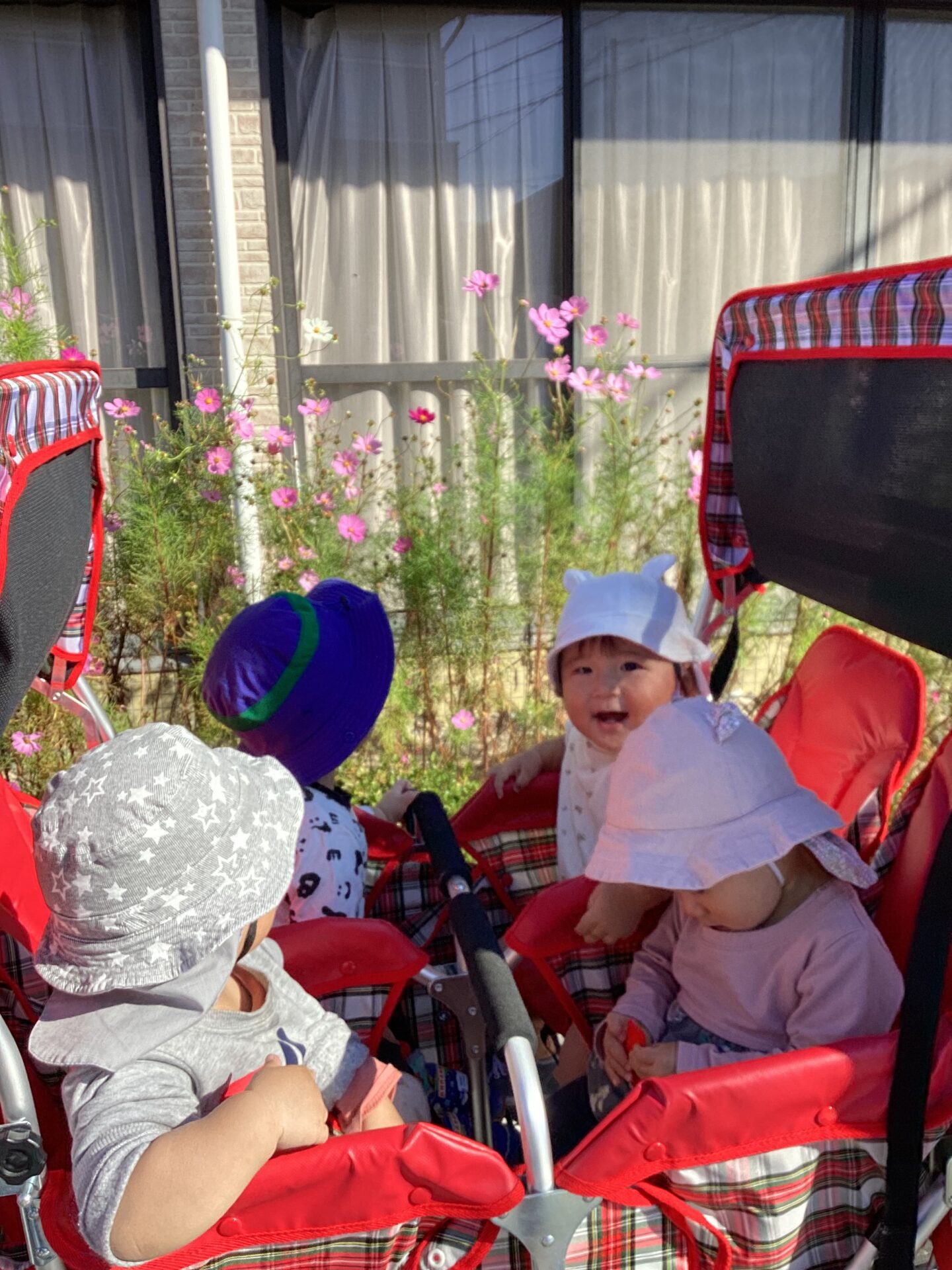 園に帰る途中、コスモスのお花を発見!!