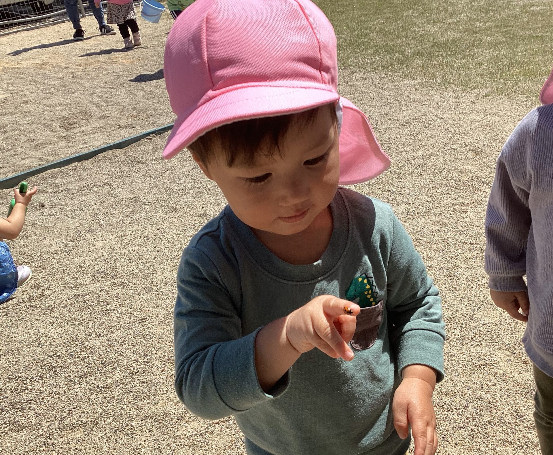 虫を見つけると、動きを観察をしたり、手に乗せて触れ合い、