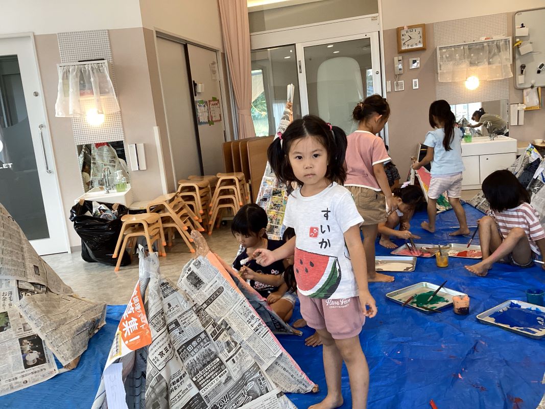その後は、好きな太さの筆を手に取り、様々な色を塗って、乾かしました。
