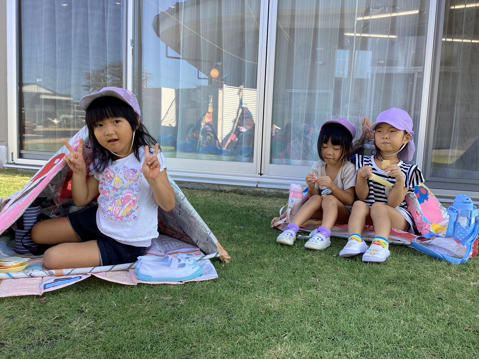 実際に、テントの中に入っておやつを食べたり、寝転んで友達と話をして