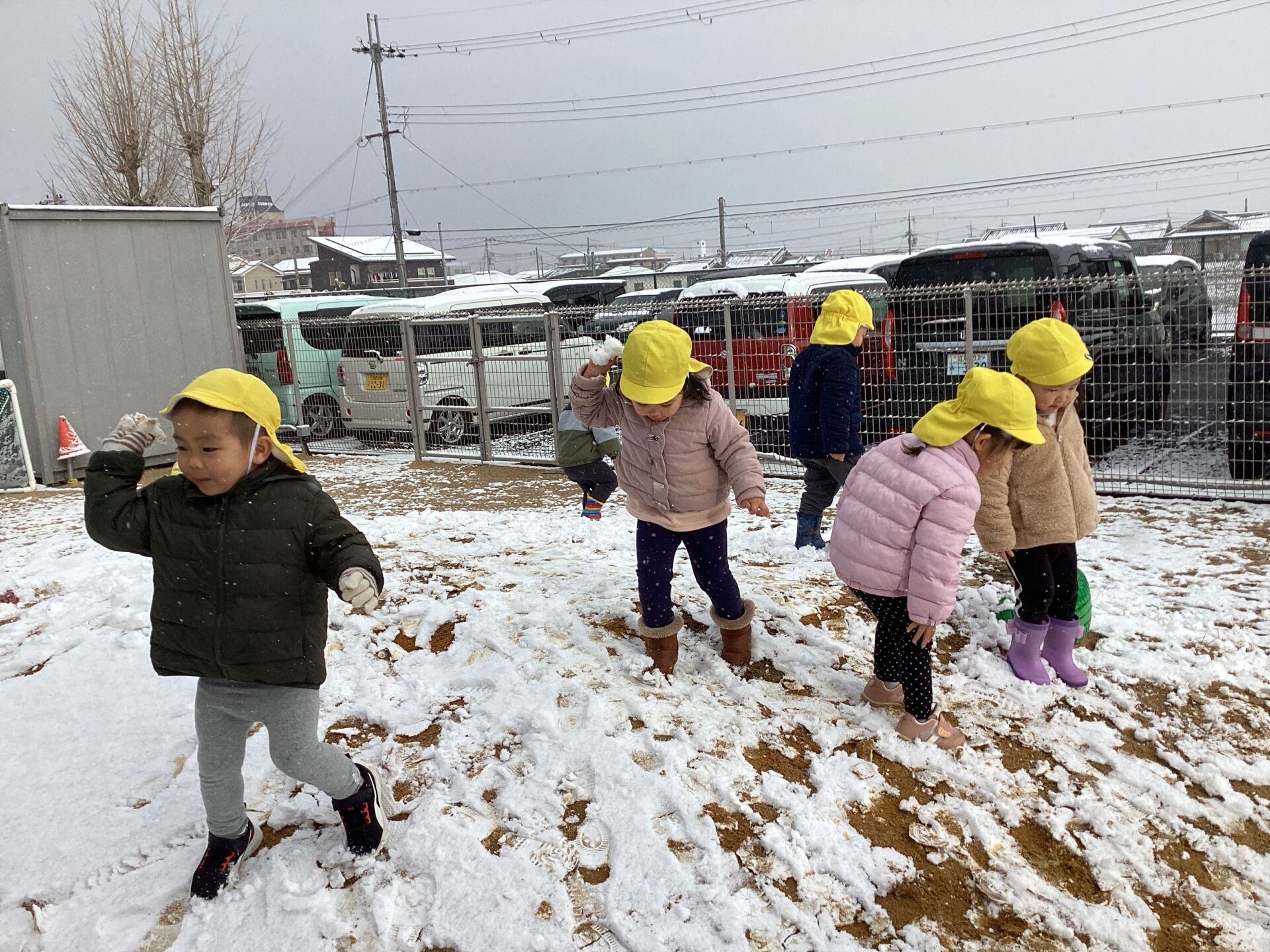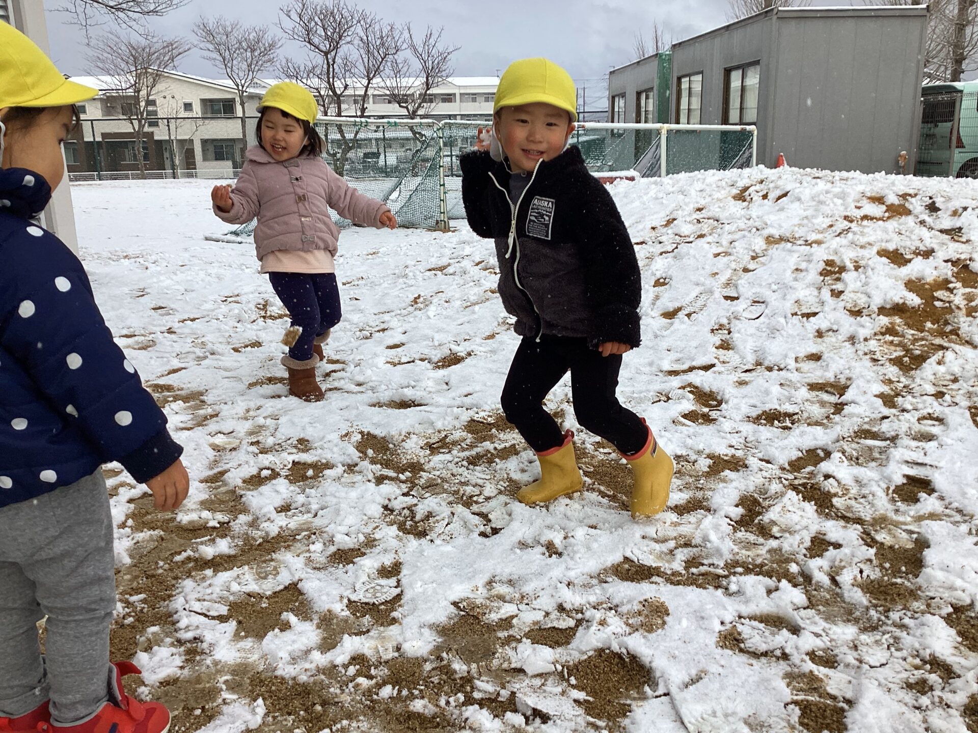 先日湖南市にも雪が積もり、保育園の園庭も真っ白になりました。