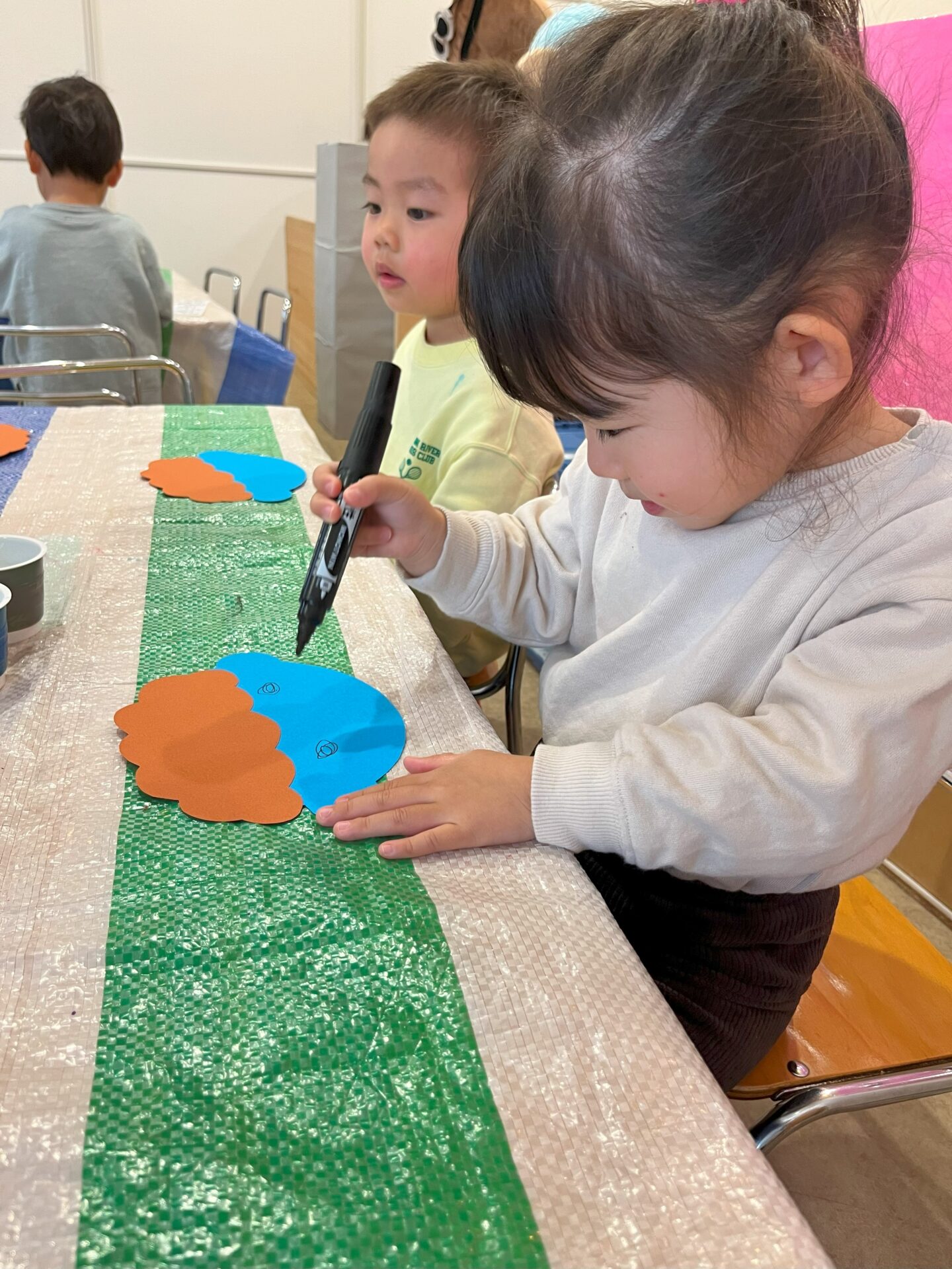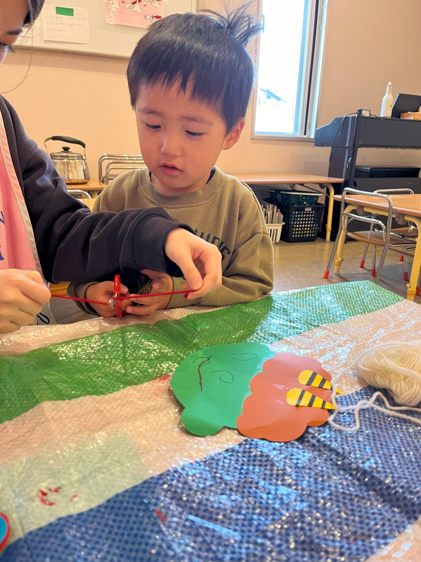 はさみを使うことを楽しんでいるあめチームです。