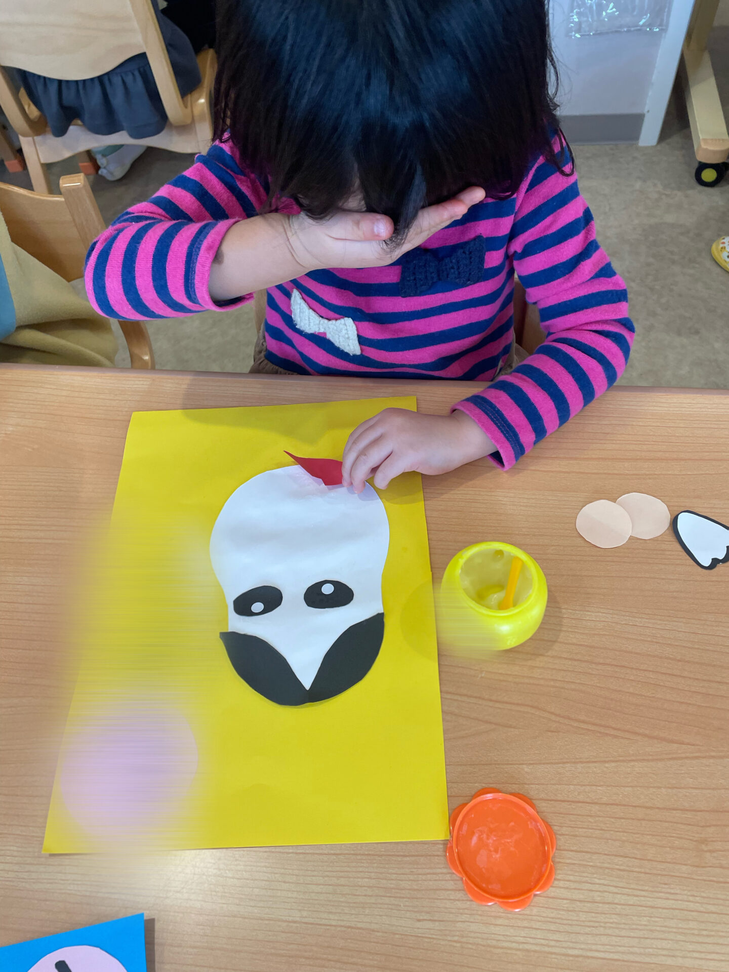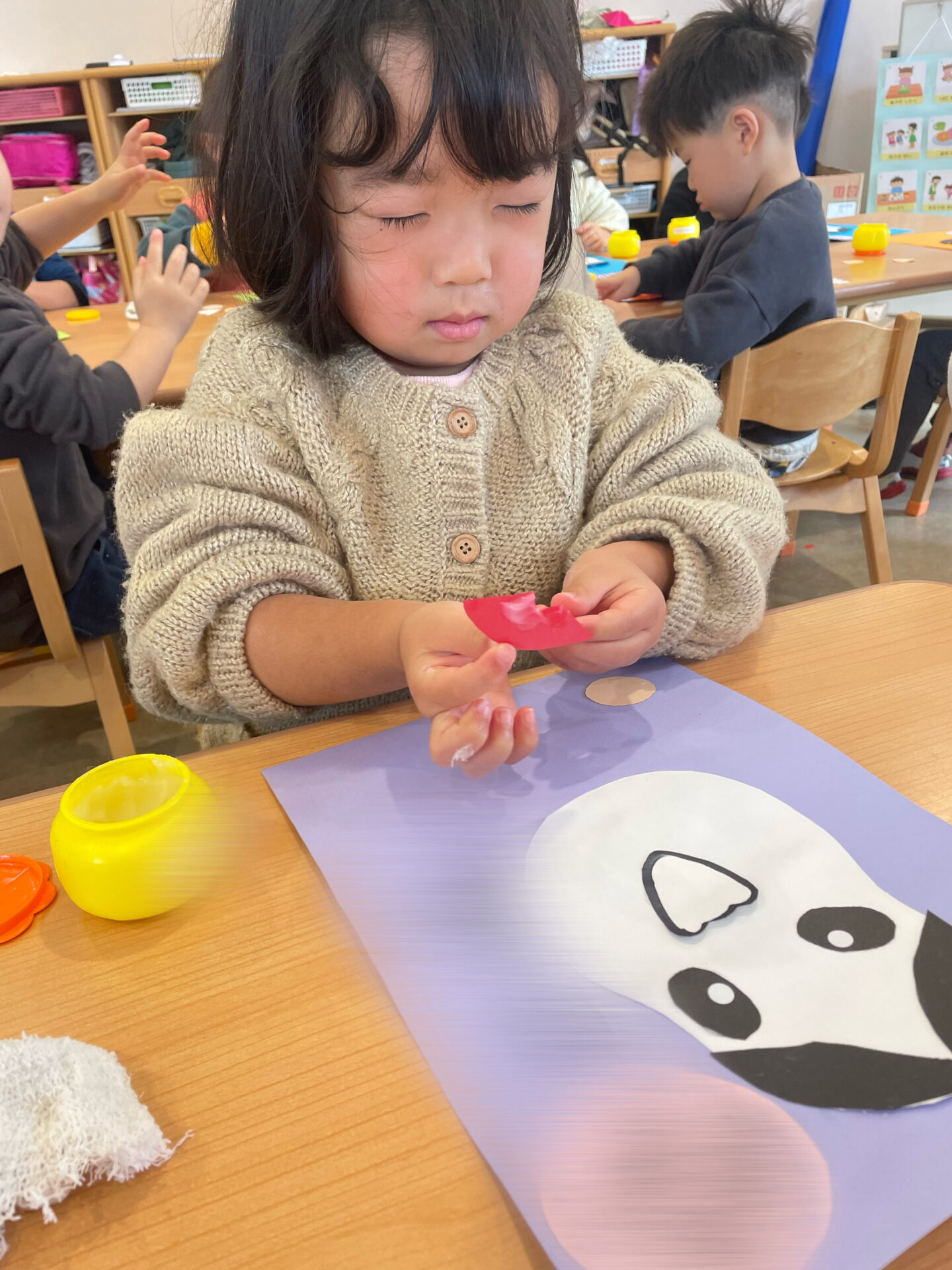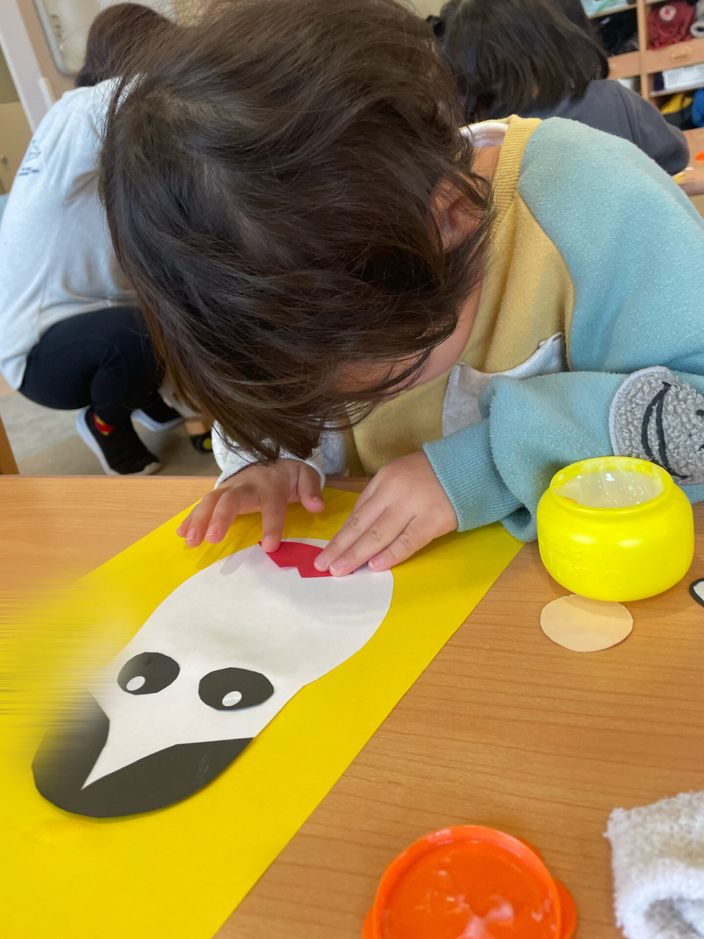長いお休みの後から、お正月の伝承遊びに興味を持っている子ども達。 かるたや駒も楽しんでいますが、子ども達に一番人気があるのは「福笑い」です!