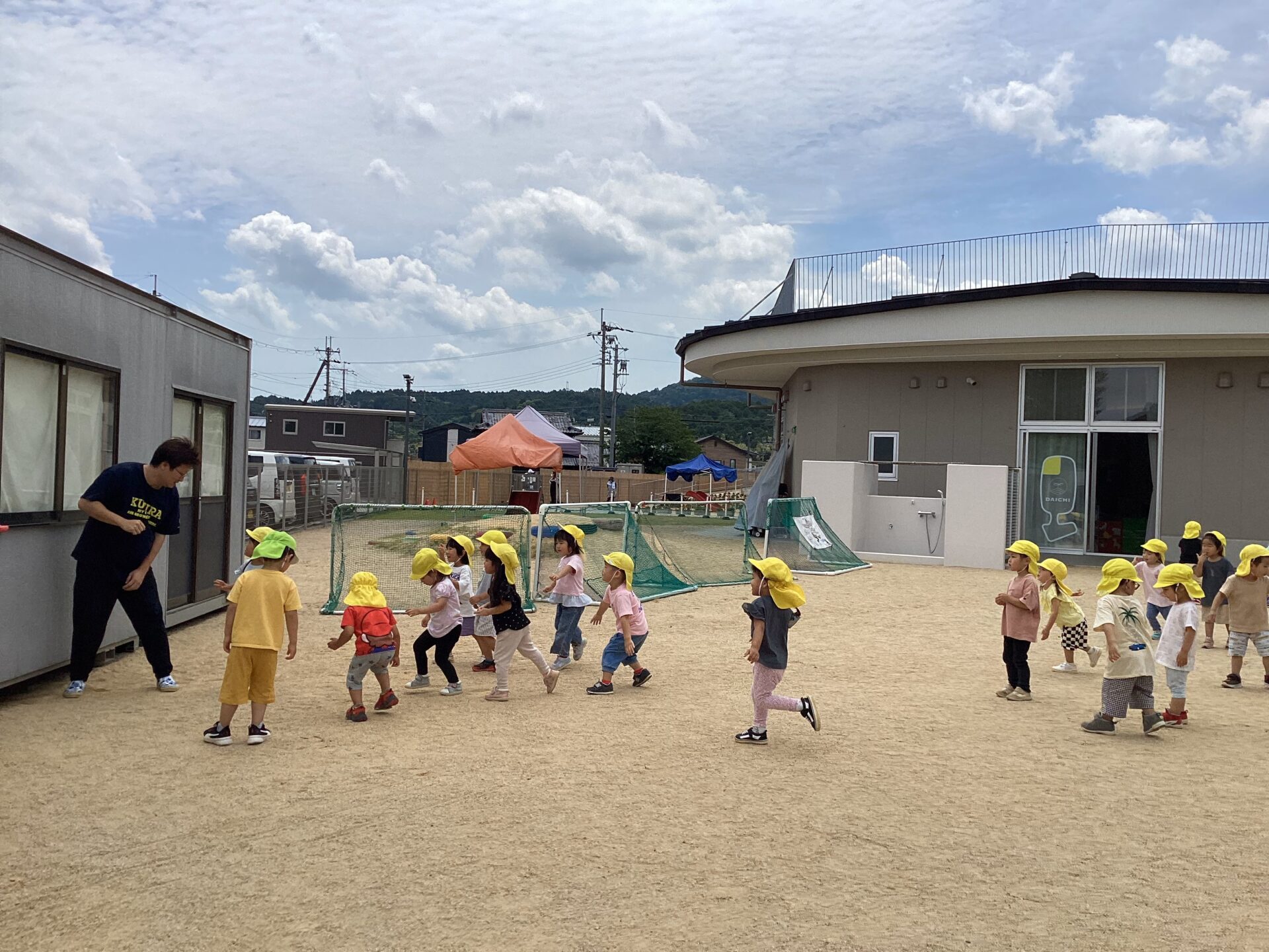 スタートの位置に、全員が並び、「一番にタッチするぞ!」とやる気満々の子ども達。