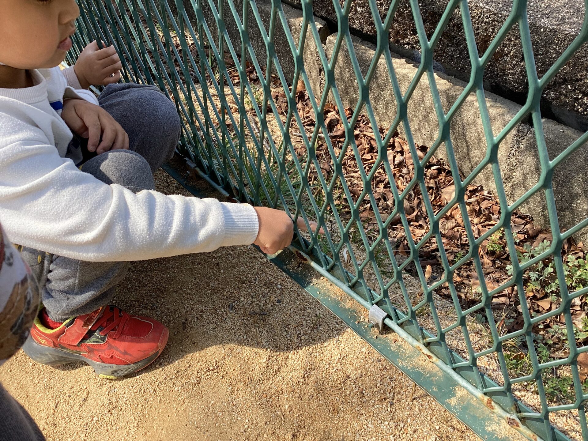 フェンスの奥に大きな「つくし」を見つけて大興奮の子ども達でした。