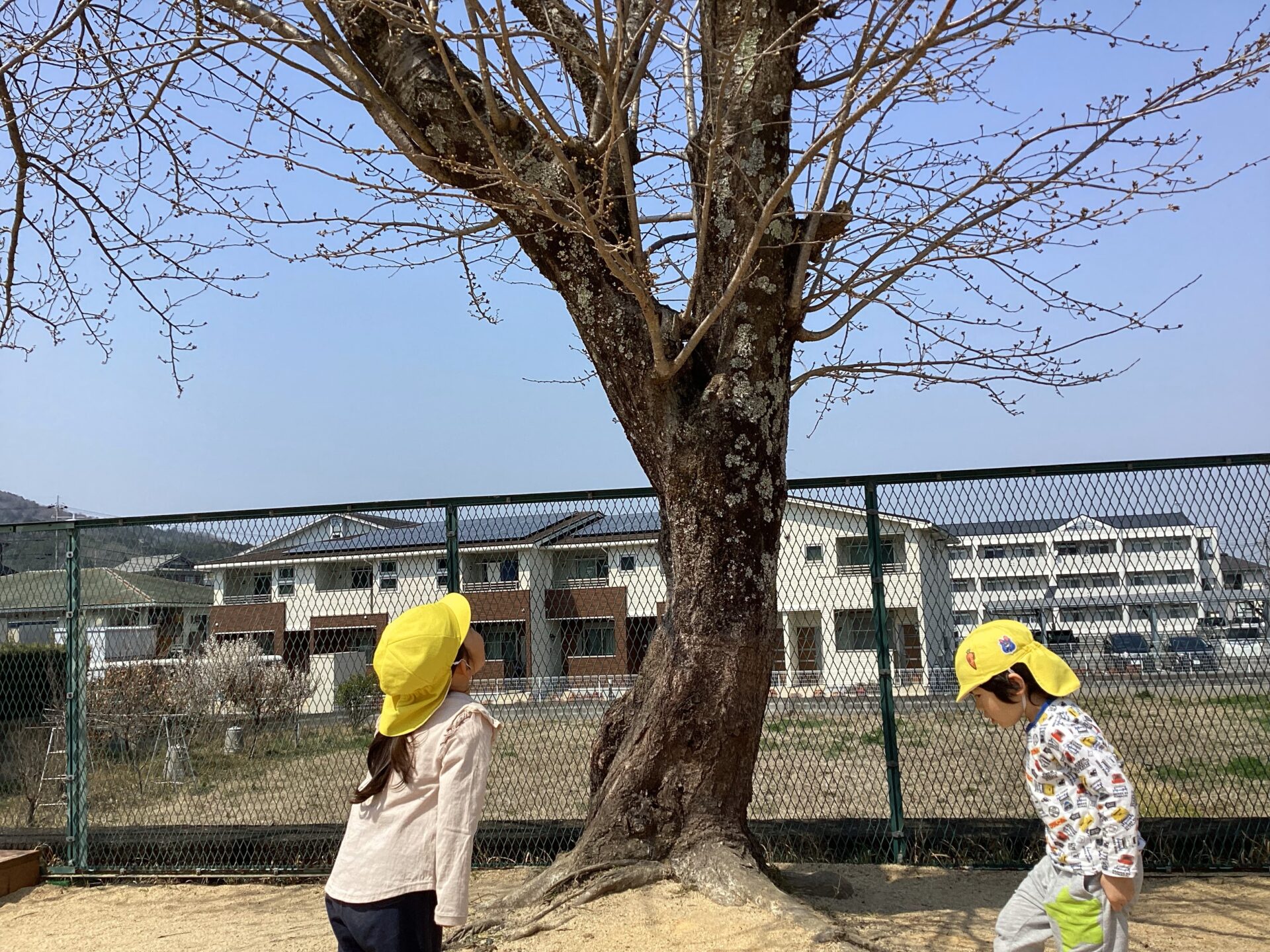 開花している梅とは対称に桜はまだ蕾です。「桜が咲く時には そらチームだね。」と伝えると