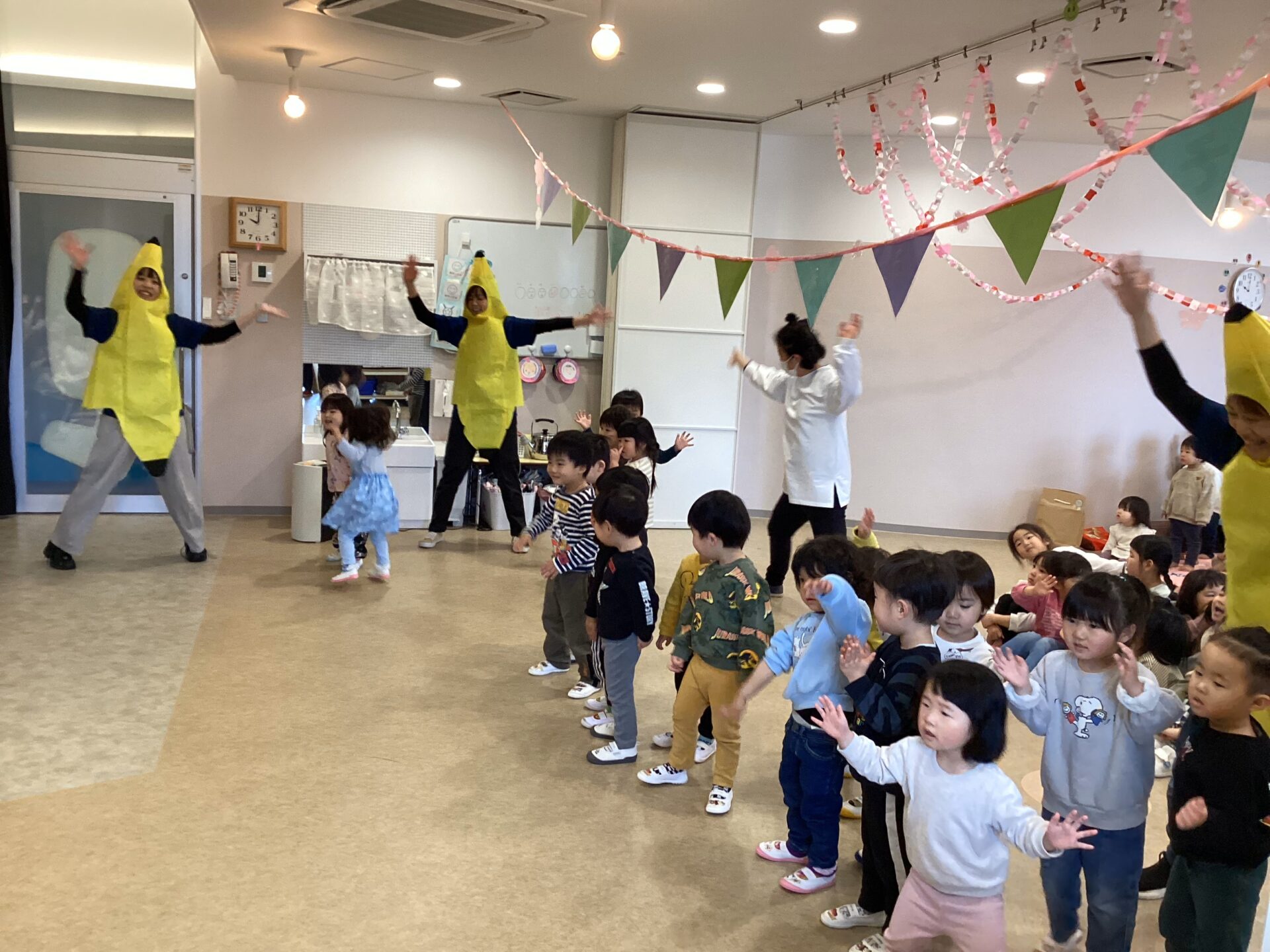 今年度も3、4歳児が中心となり、会場の飾りを作ったり、