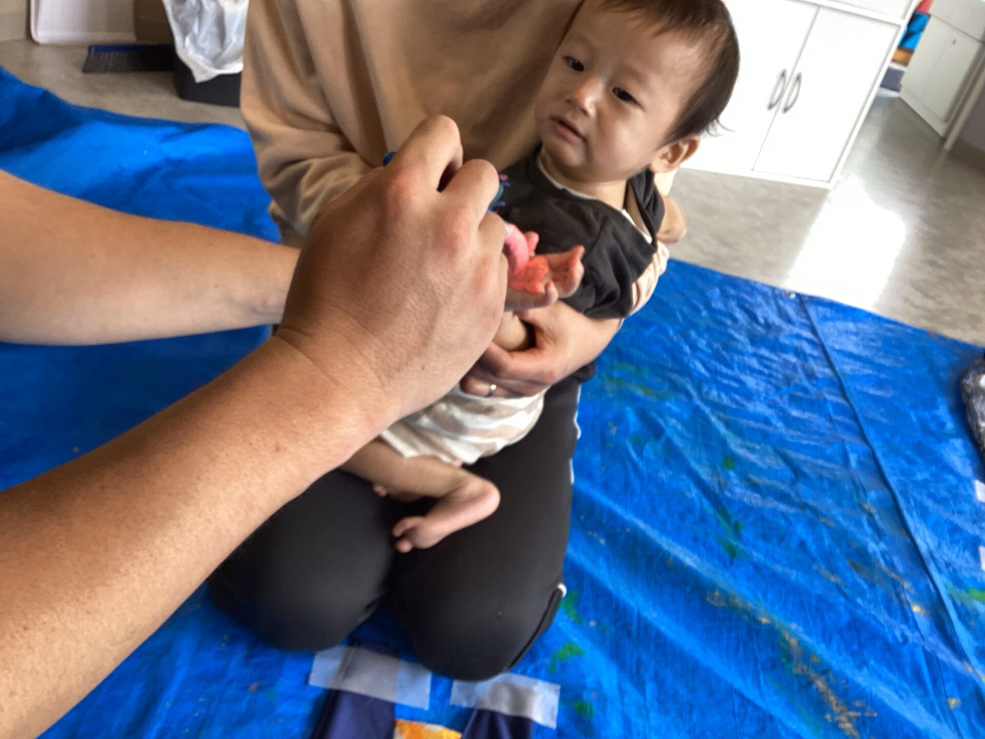 初めての絵の具の感触にびっくり!!
