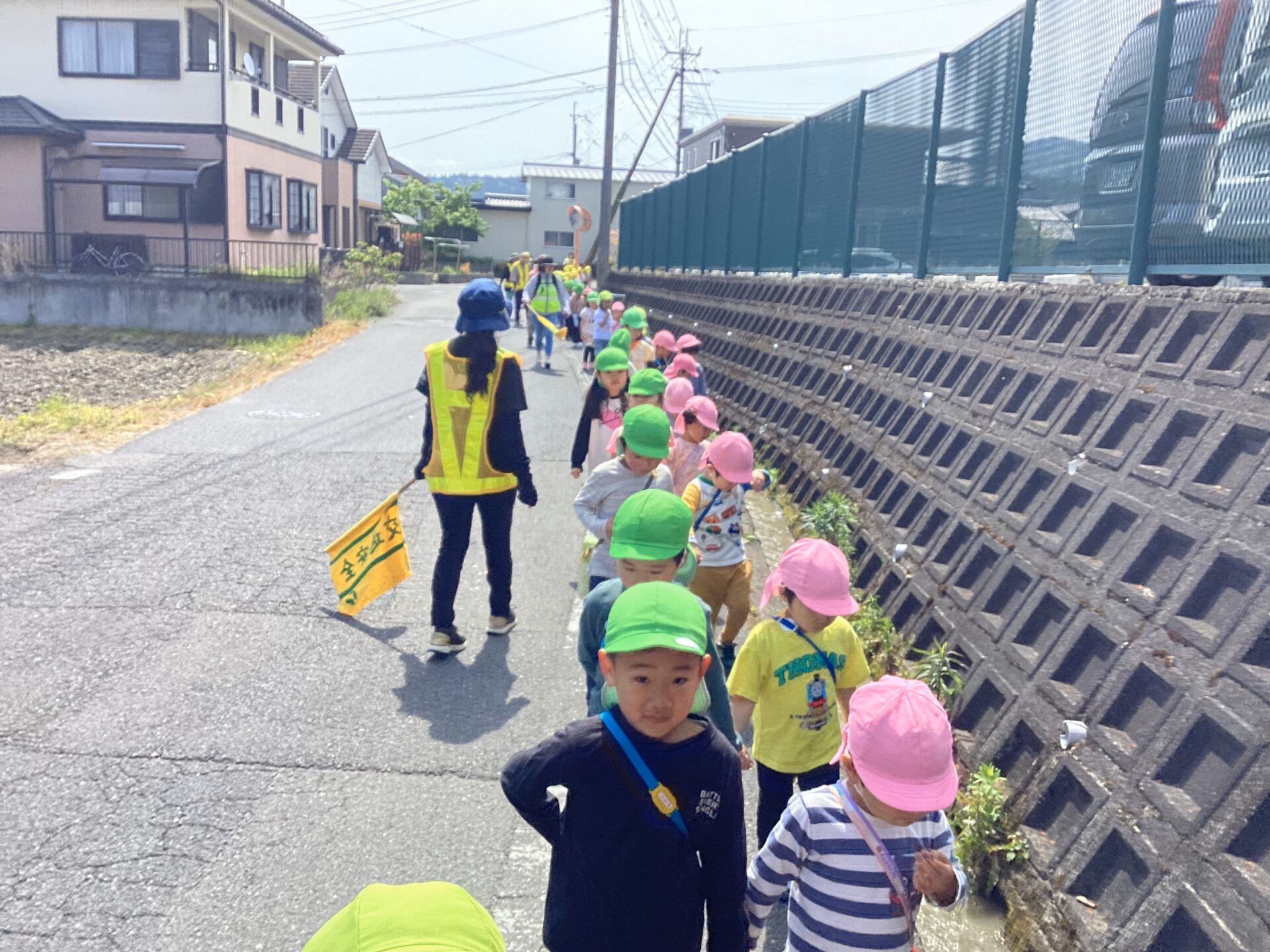 3、4,5歳児全員で、園周辺のお散歩に行きました。