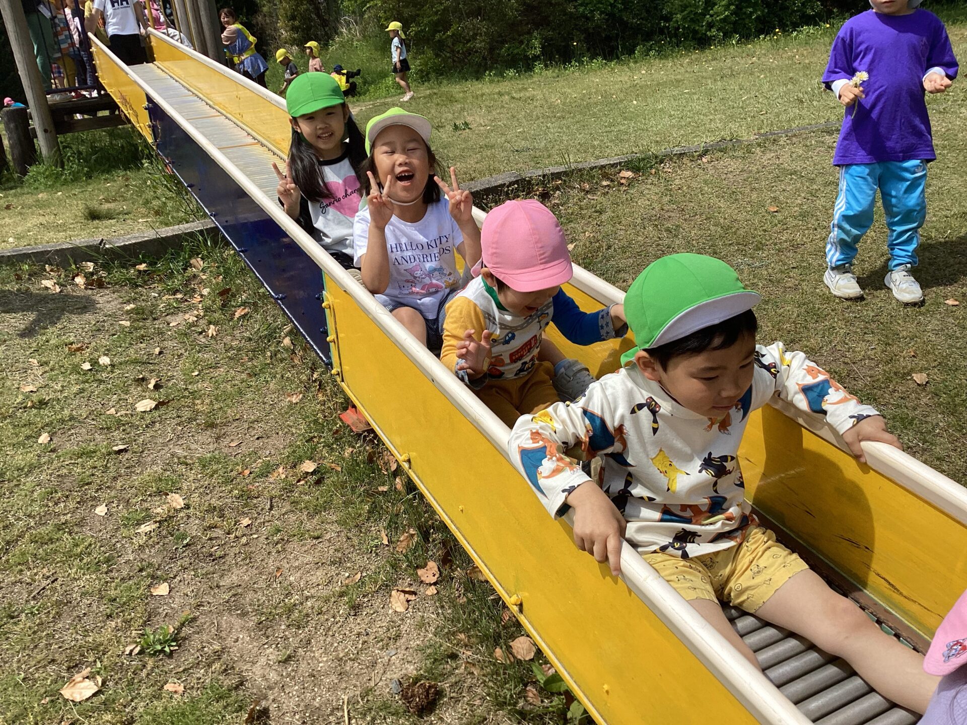 保育園の周りをぐるっと1周歩いて、その後は子ども達から人気のあるローラー公園に到着!!
