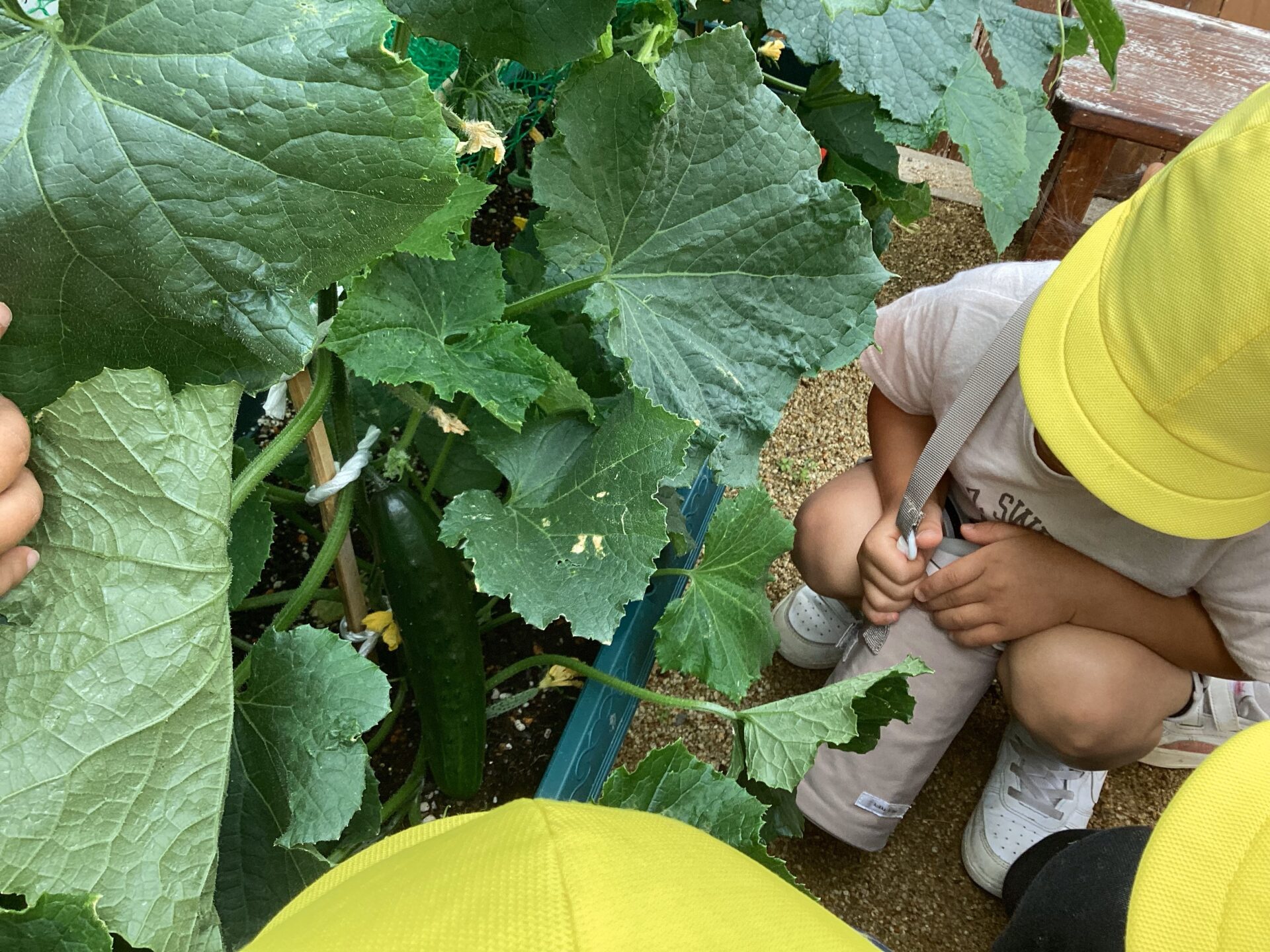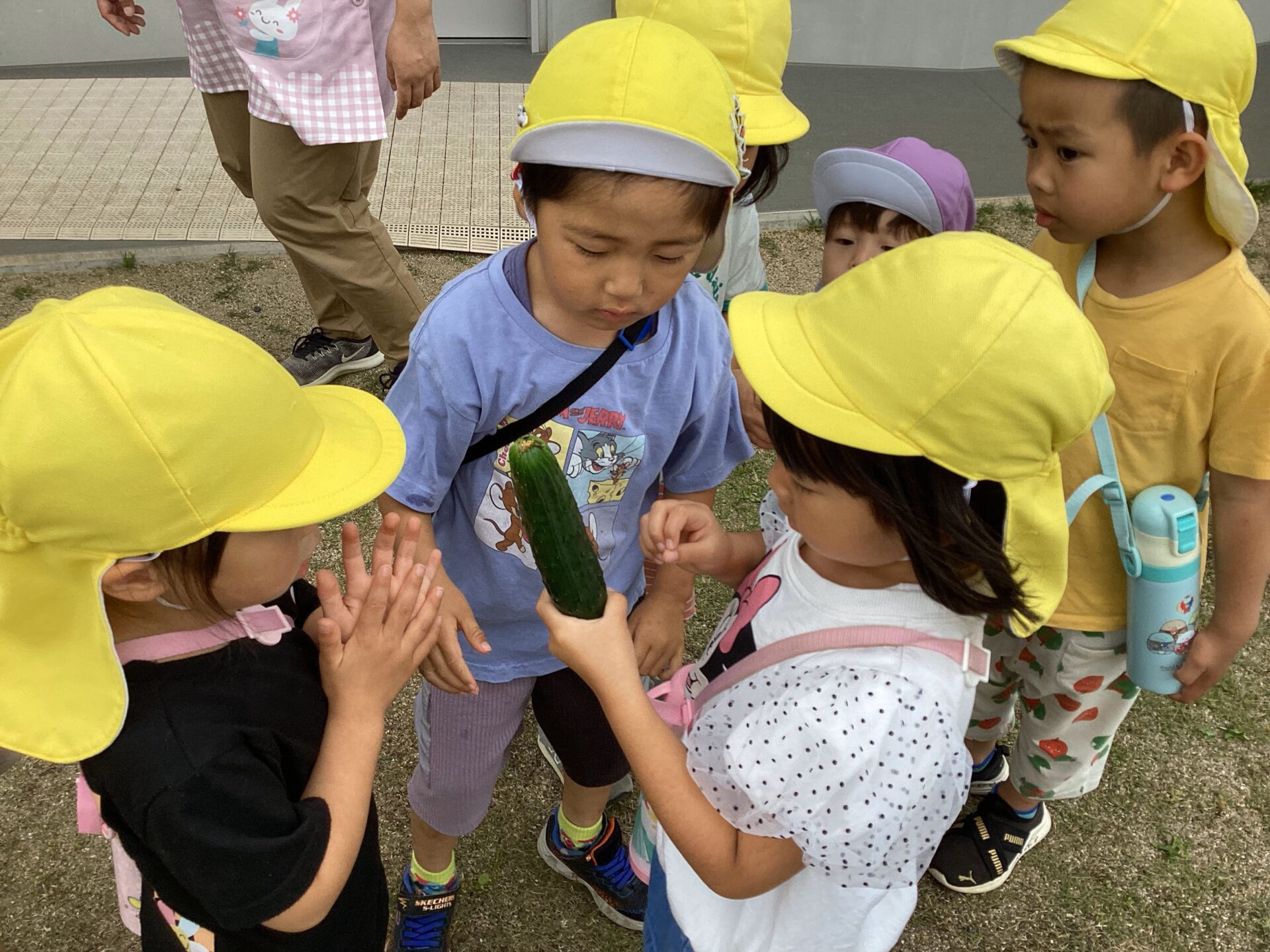 4歳児 そらチーム「きゅうりを収穫したよ」