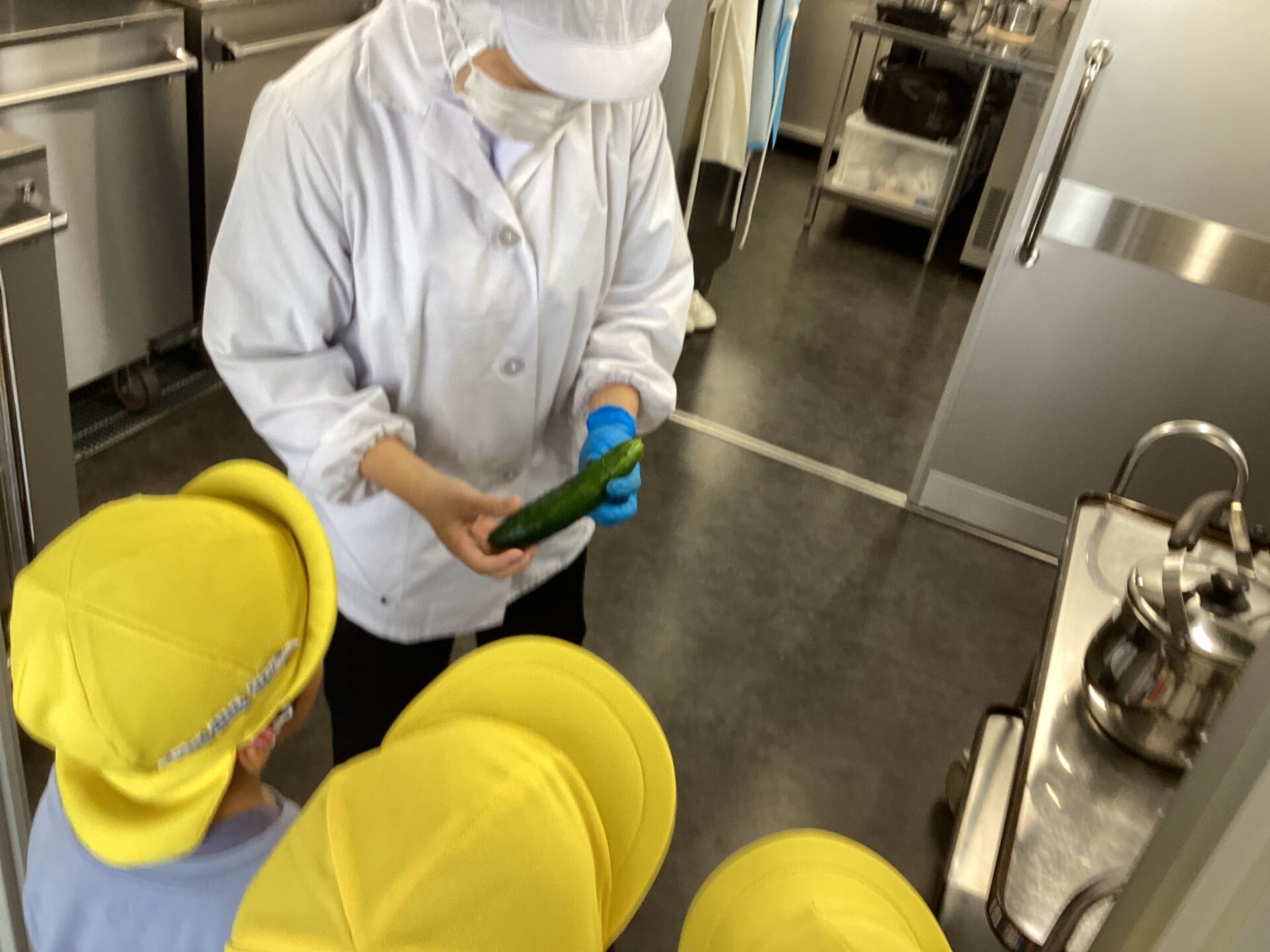 きゅうりの重さや感触、匂いを実際きゅうりを手にして、体感した子ども達。