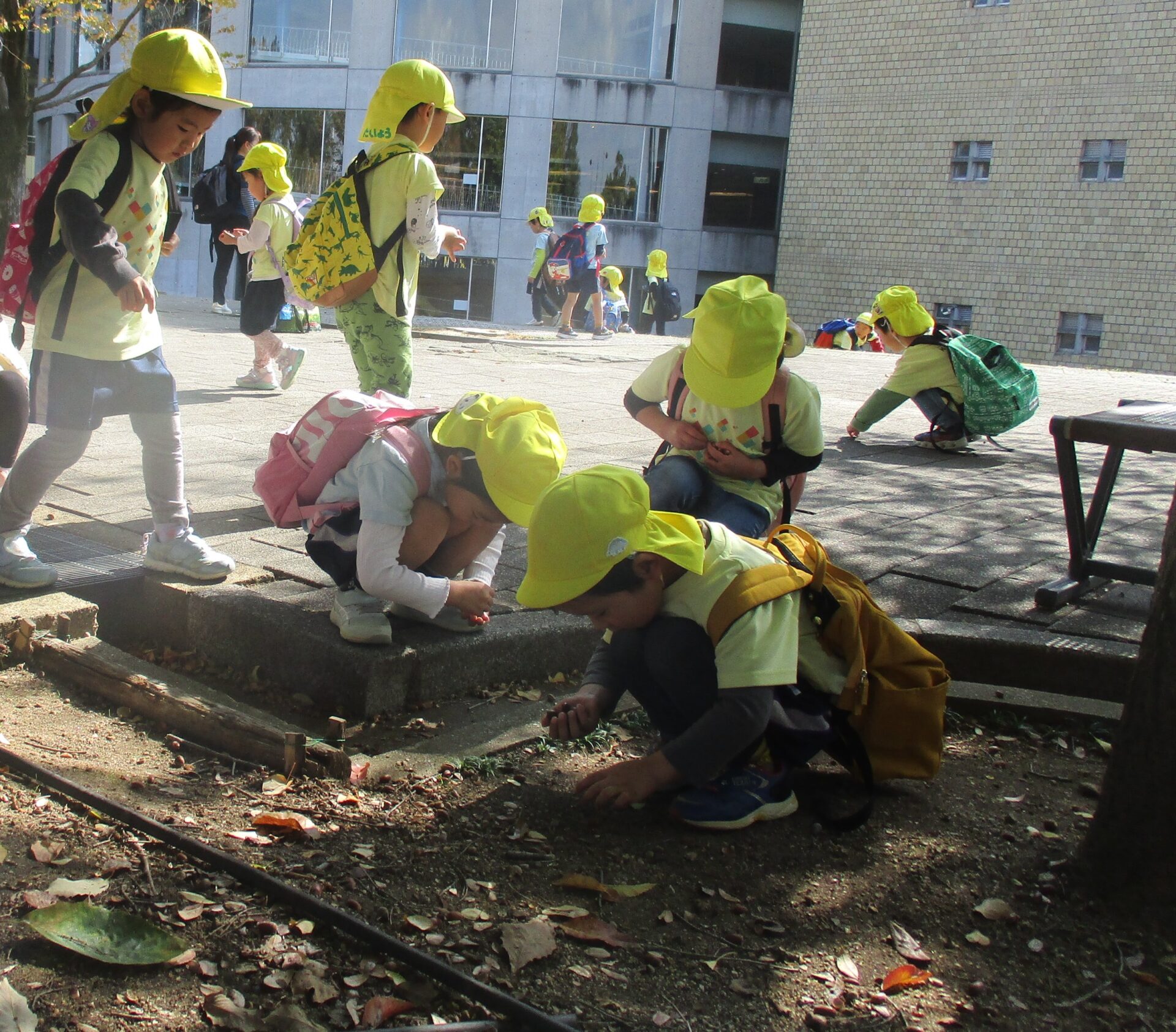 たくさん体を動かした後は、みんなでどんぐり拾い。