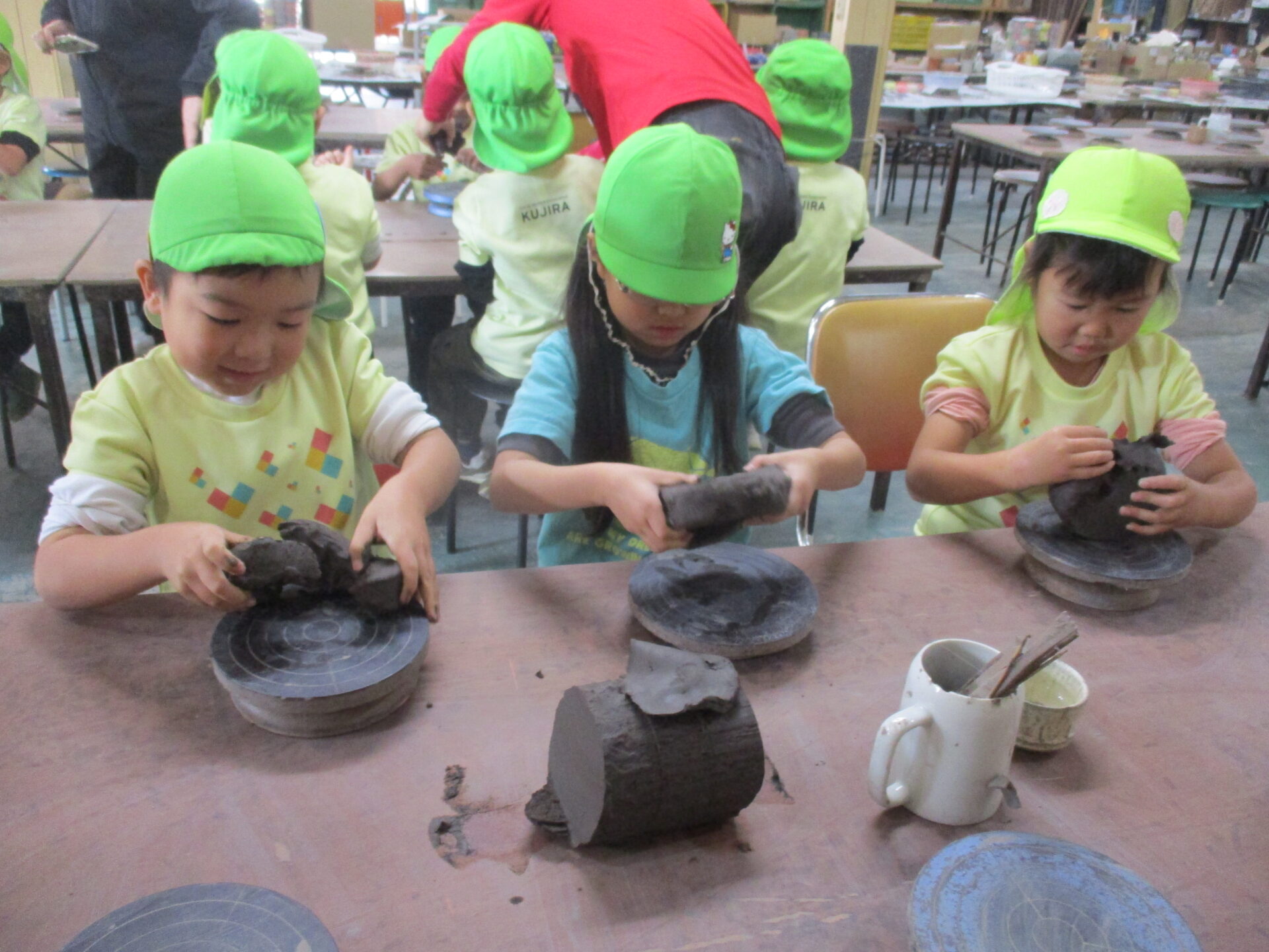 くじらチームの秋の遠足は、信楽陶芸村に行き、陶芸体験をしました。