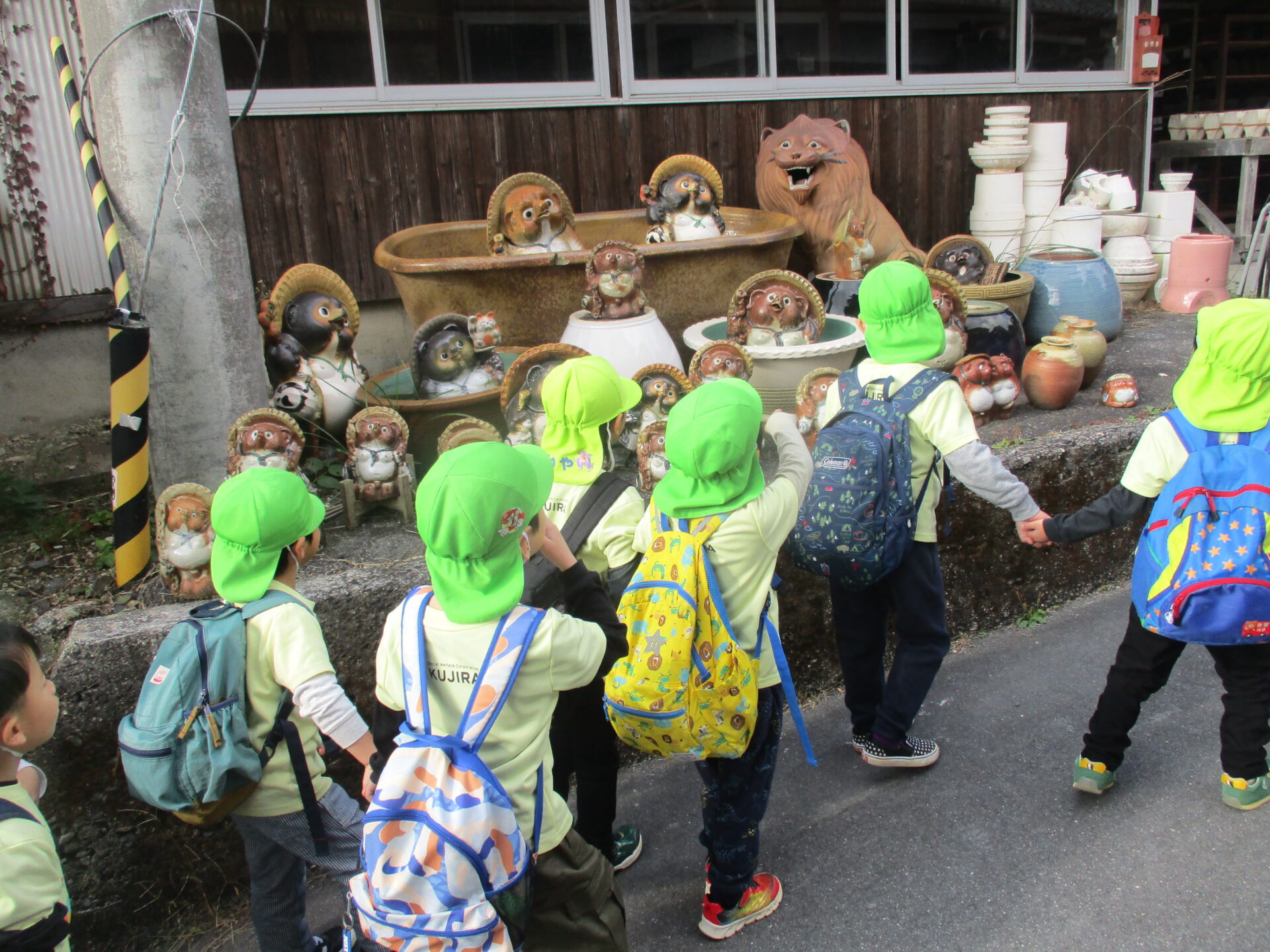 沢山のたぬきに出迎えられ、