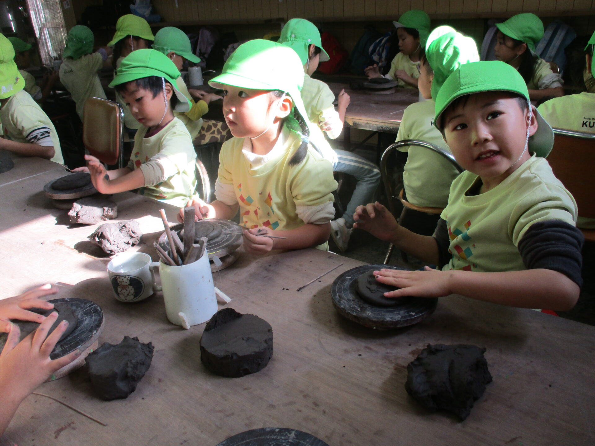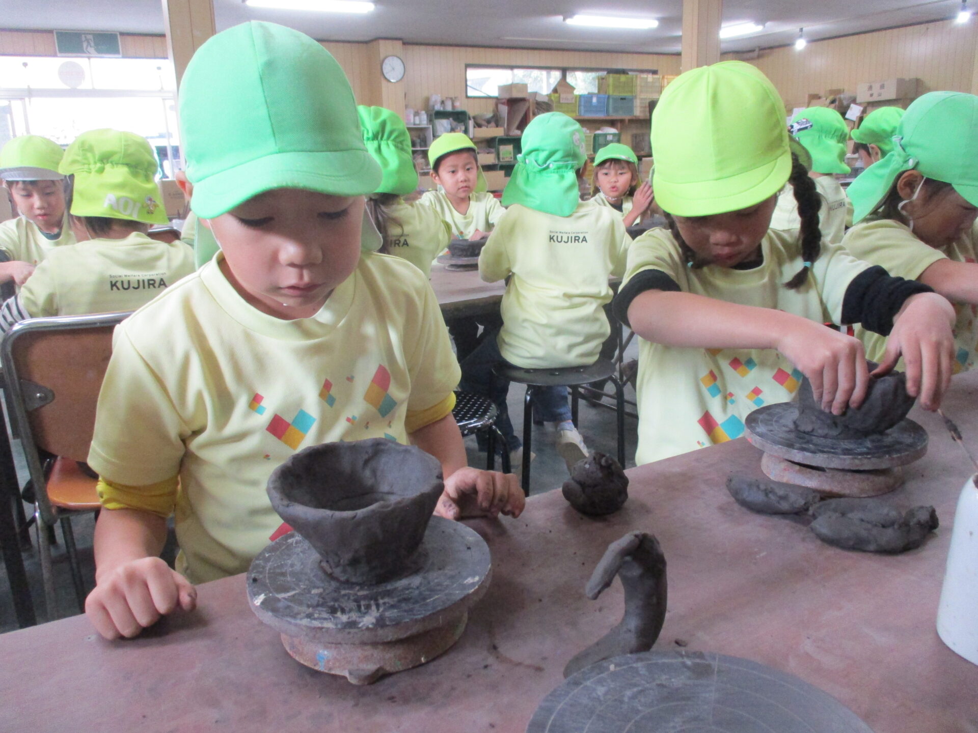 くじらチームの秋の遠足は、信楽陶芸村に行き、陶芸体験をしました。