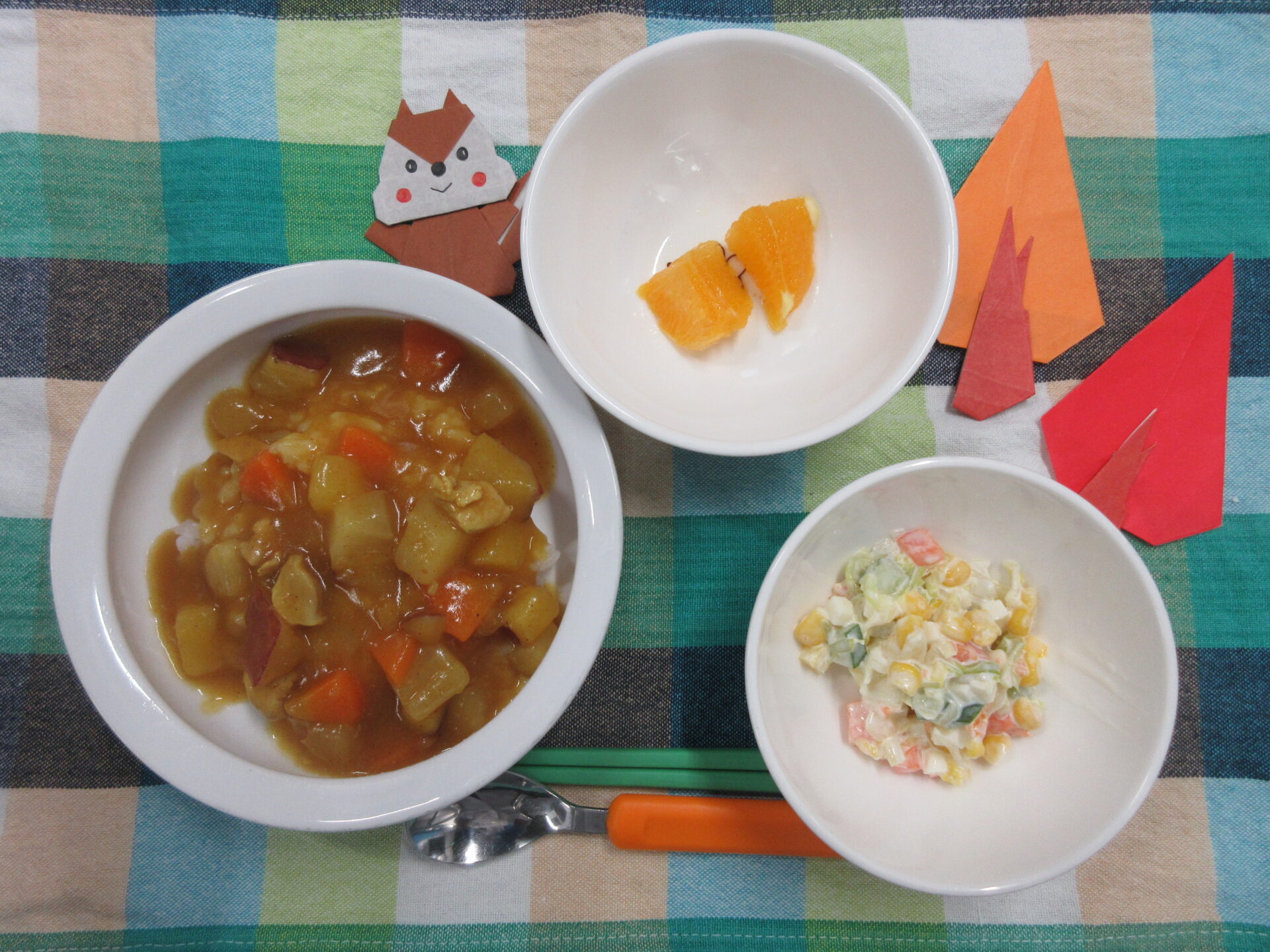 保育園では季節に合わせて、かぼちゃやなすの入った夏野菜カレー、だいこんやさつま芋の入った冬野菜カレー、子ども達の苦手な大豆を入れたビーンズキーマカレーなど、毎月違った色々なカレーを作っています。
