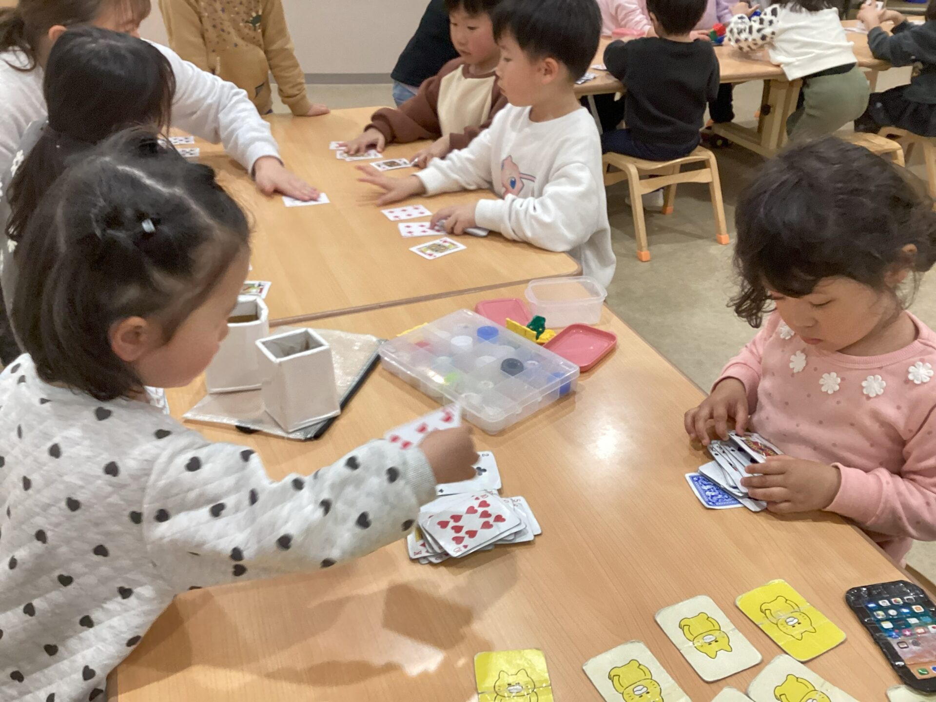 カードゲームで大盛り上がりの三雲くじら保育園です。