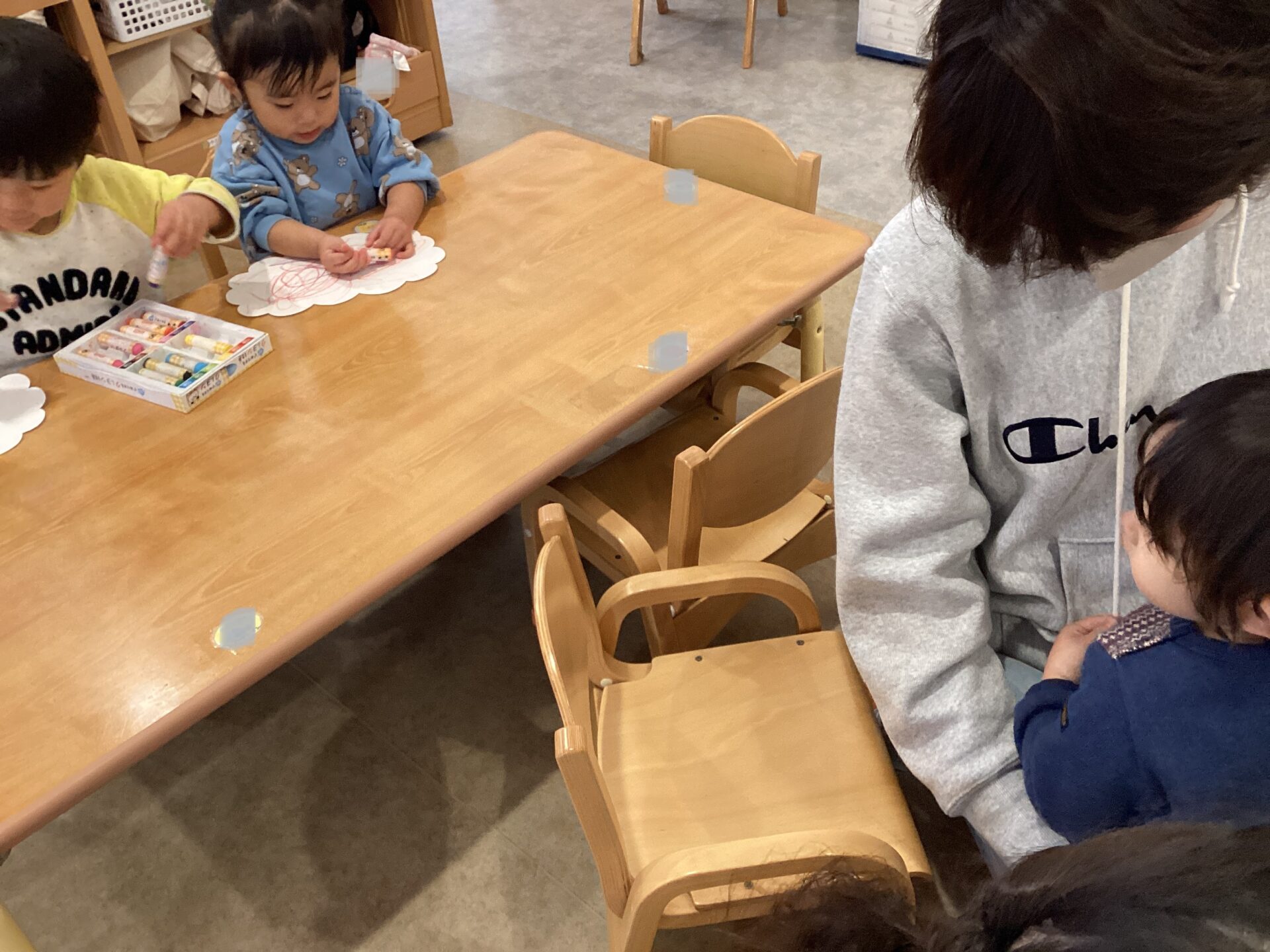 だいちチームのお友達がクレヨンでお絵描きをする姿を見ているうちに、少しずつ興味がわいてきたようです!