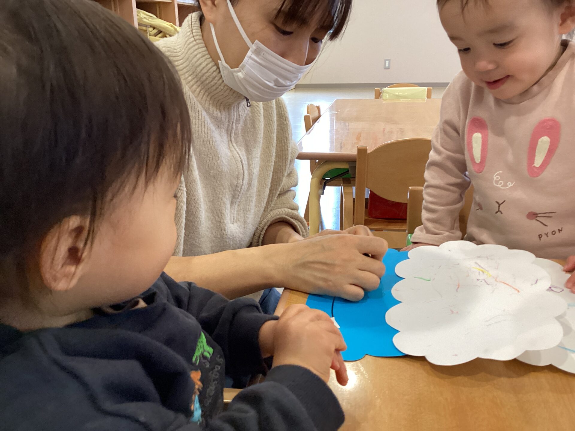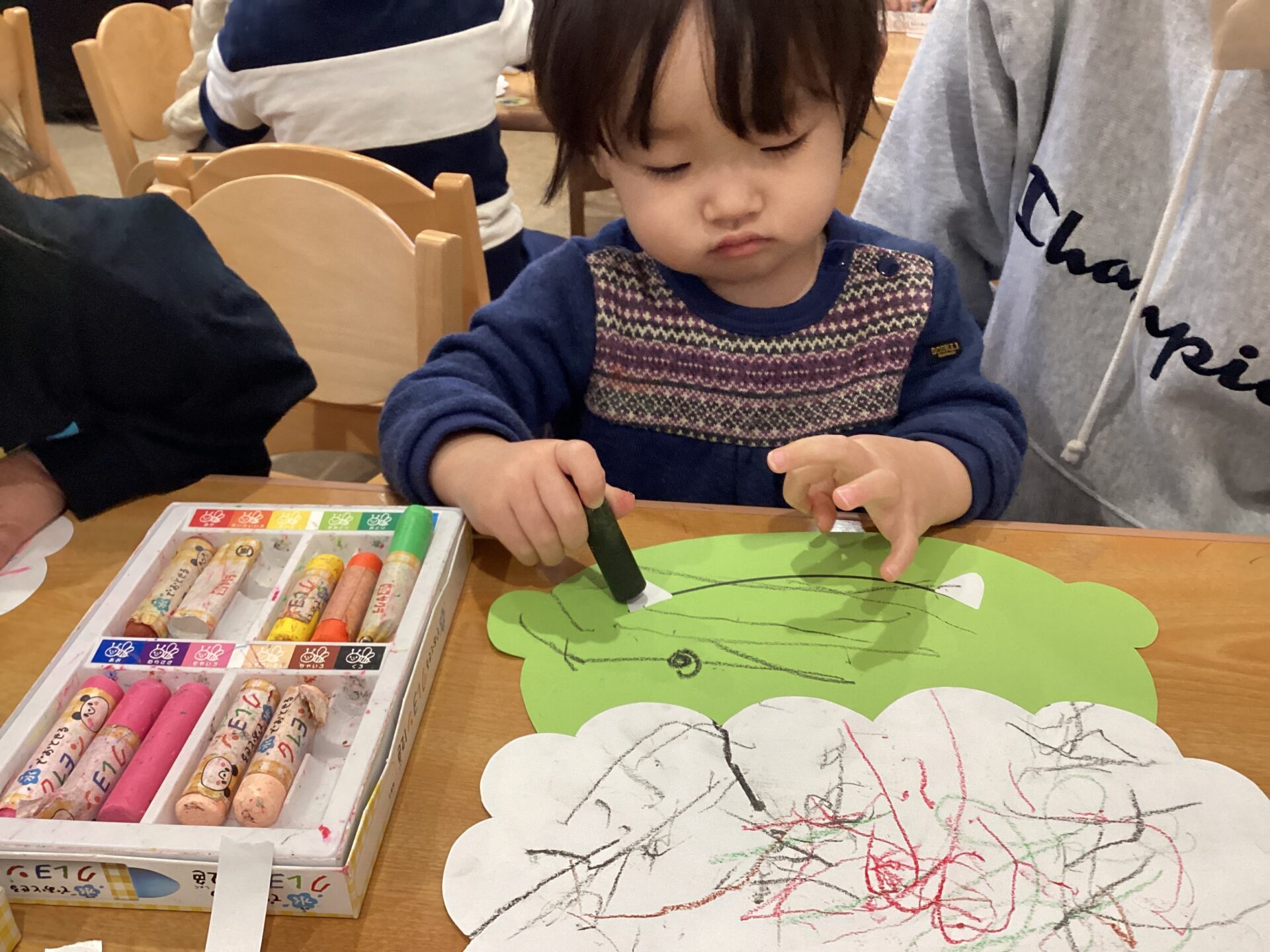 「やってみようかな…」とクレヨンを手に取ると、集中して描く姿が見られました。