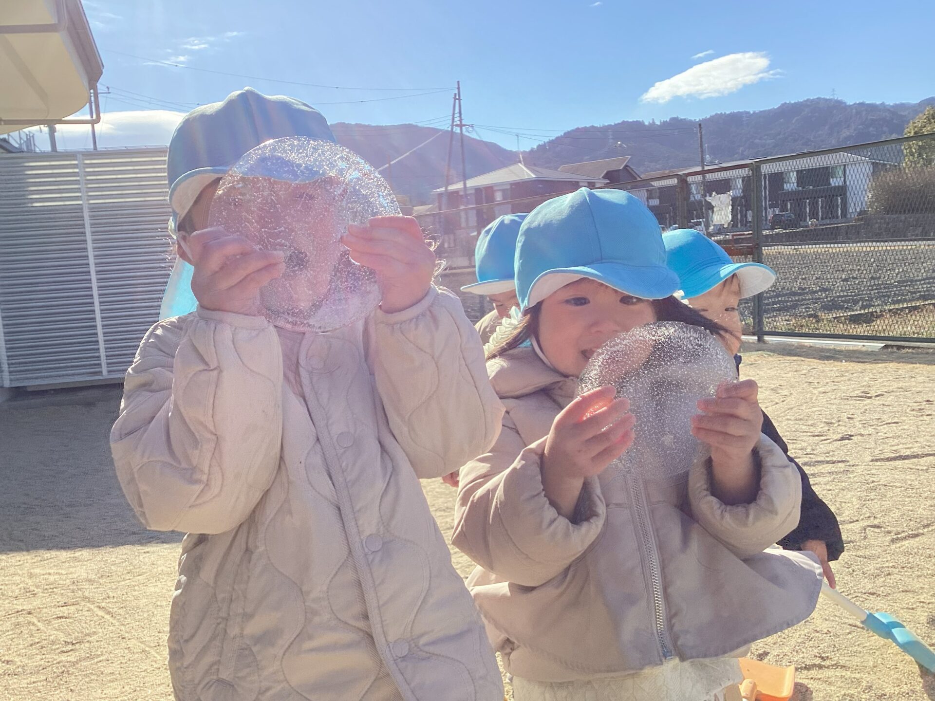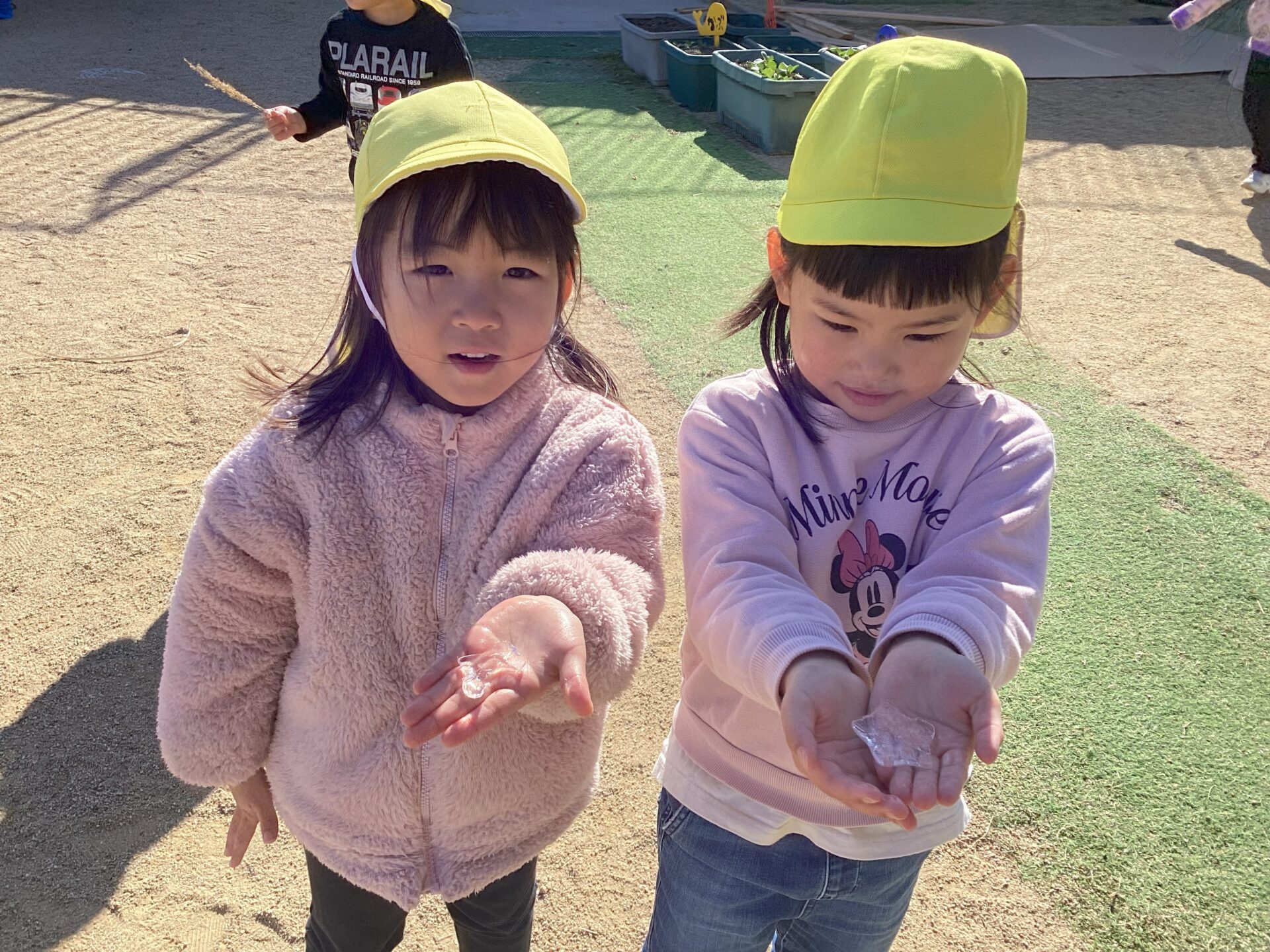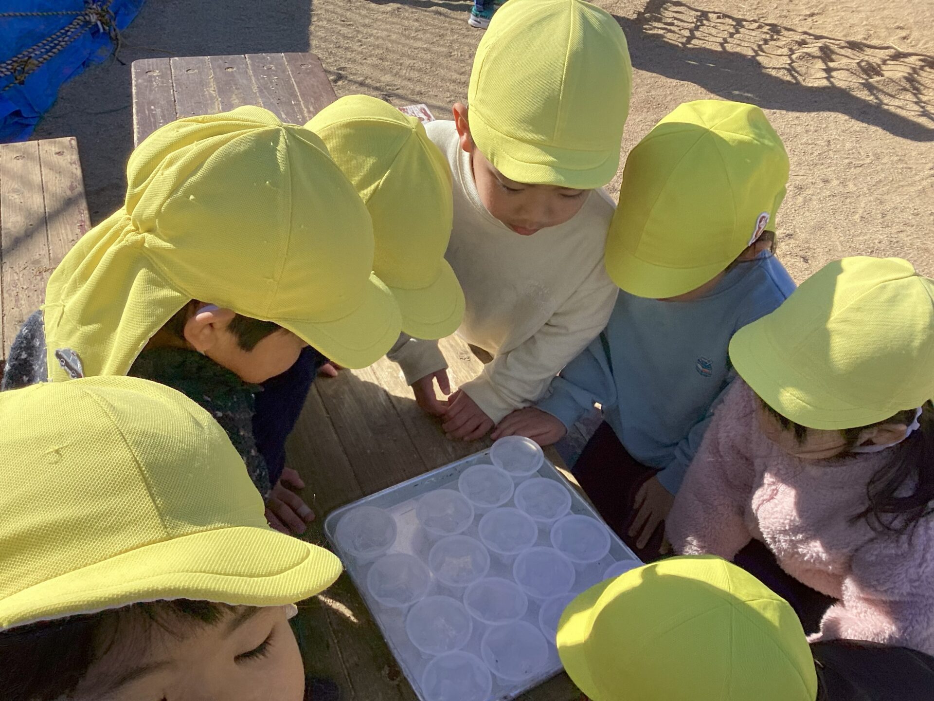 「先生みてみて!氷ができてるよ!」と大喜びの子ども達。
