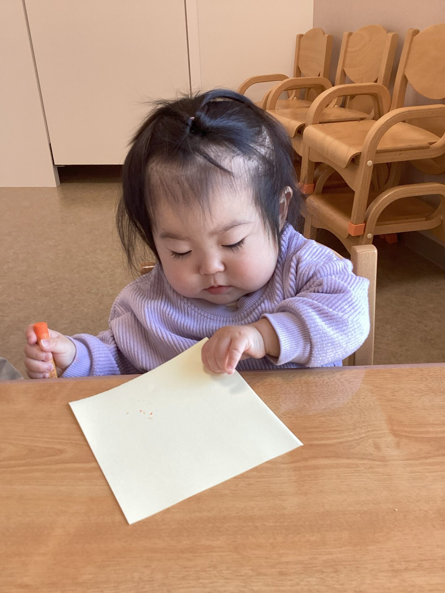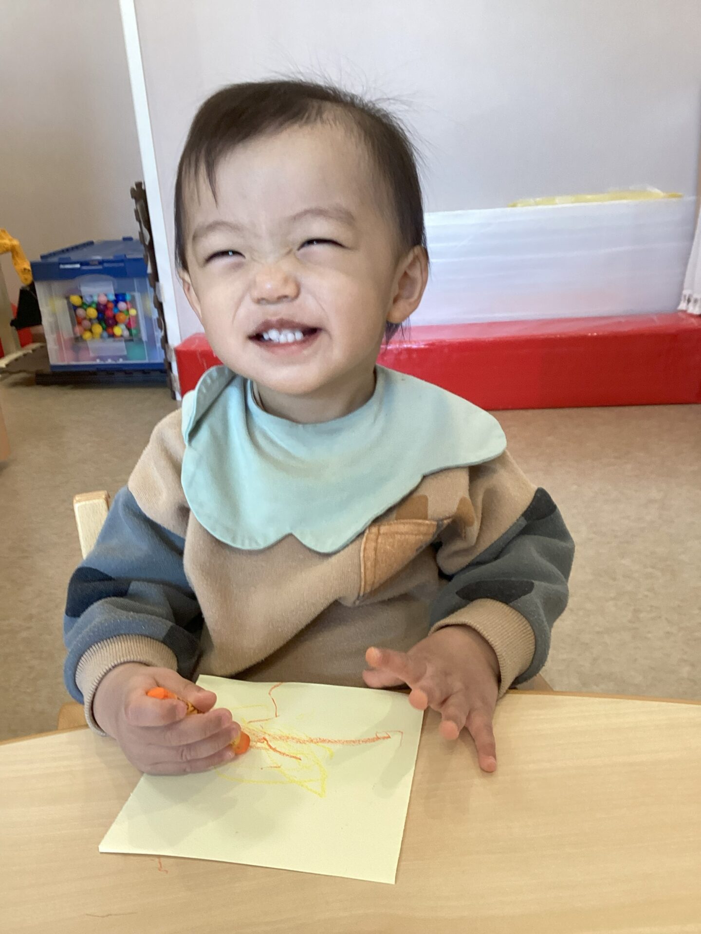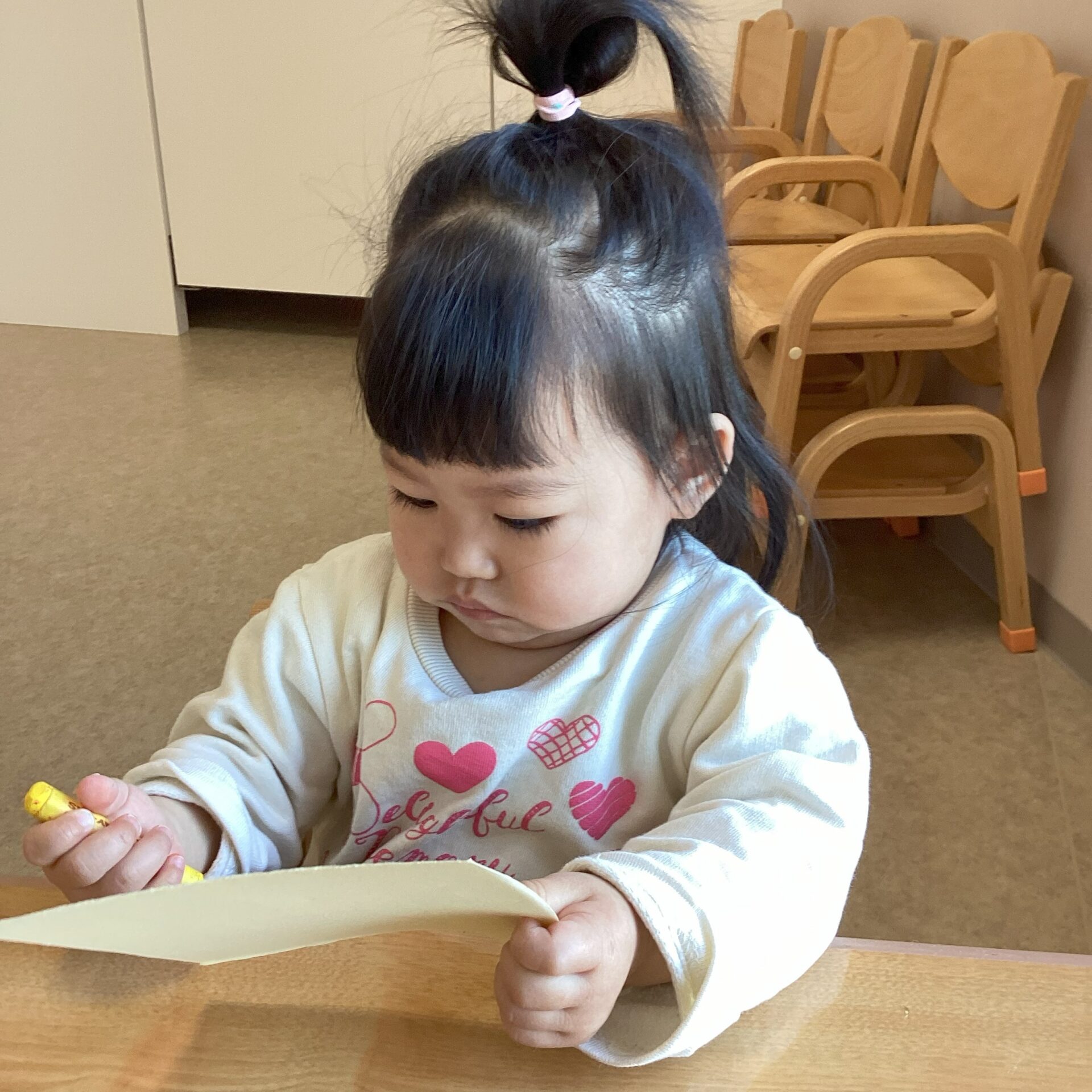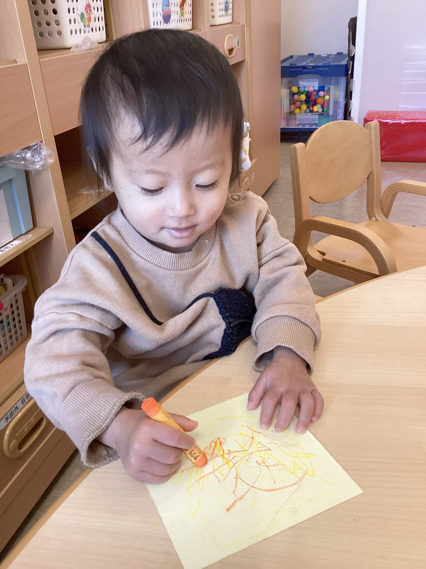 夢中でシールを貼る姿や、のびのびとお絵描きを楽しむ姿に、大きな成長を感じています。