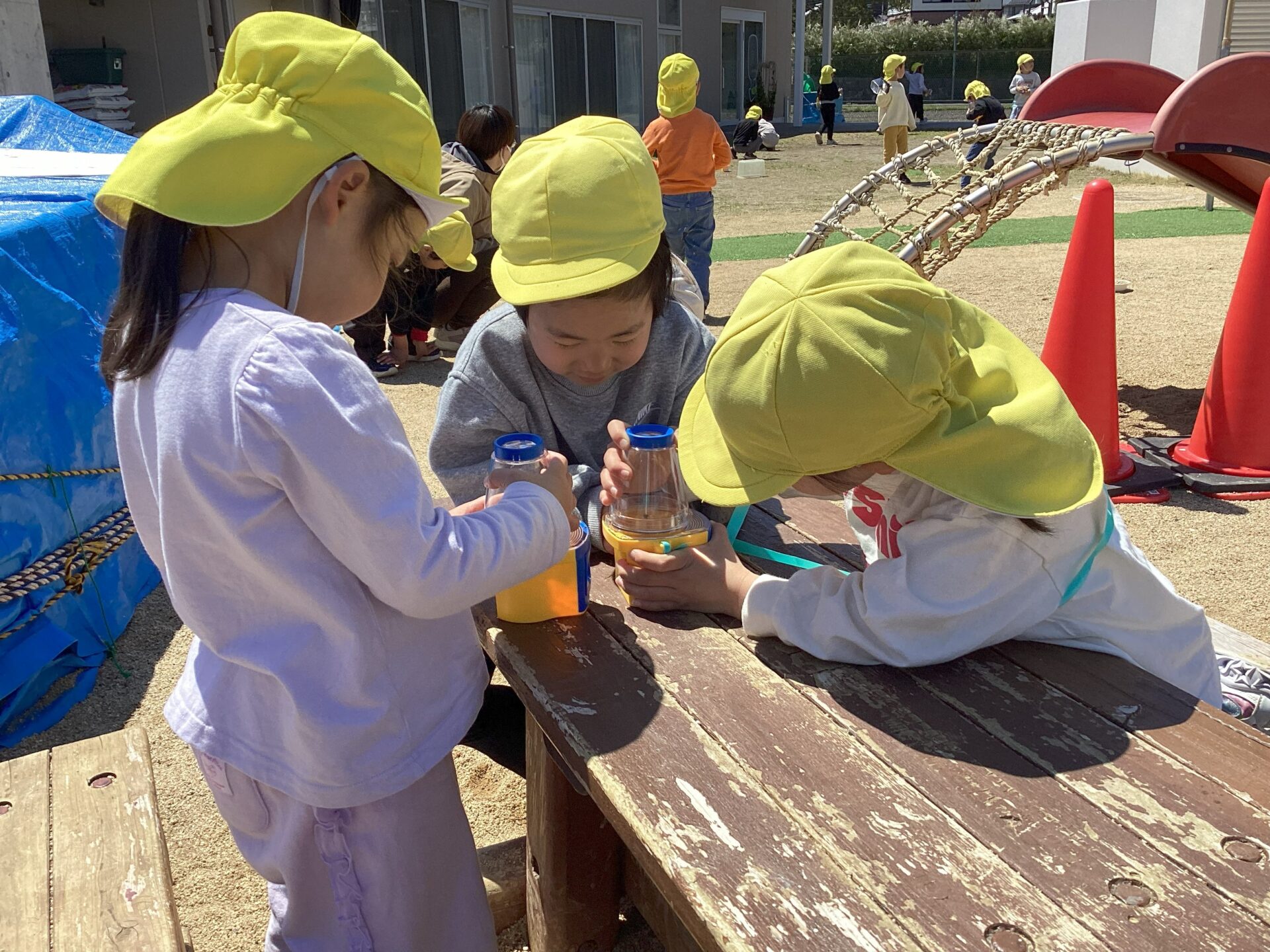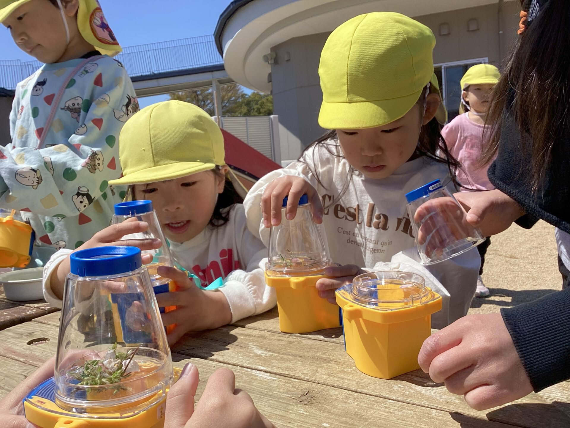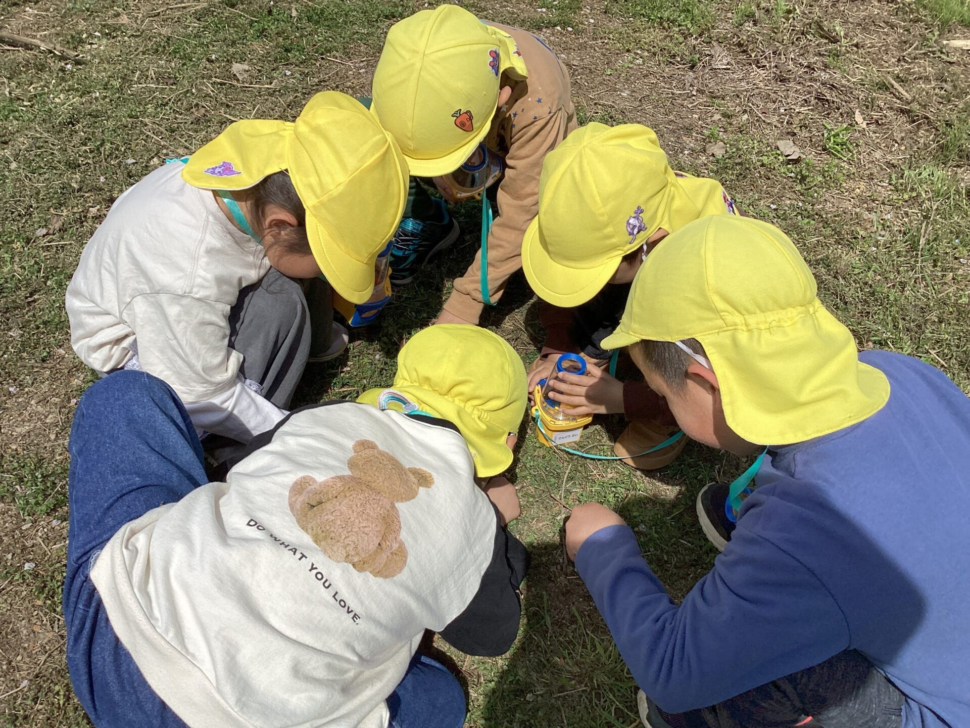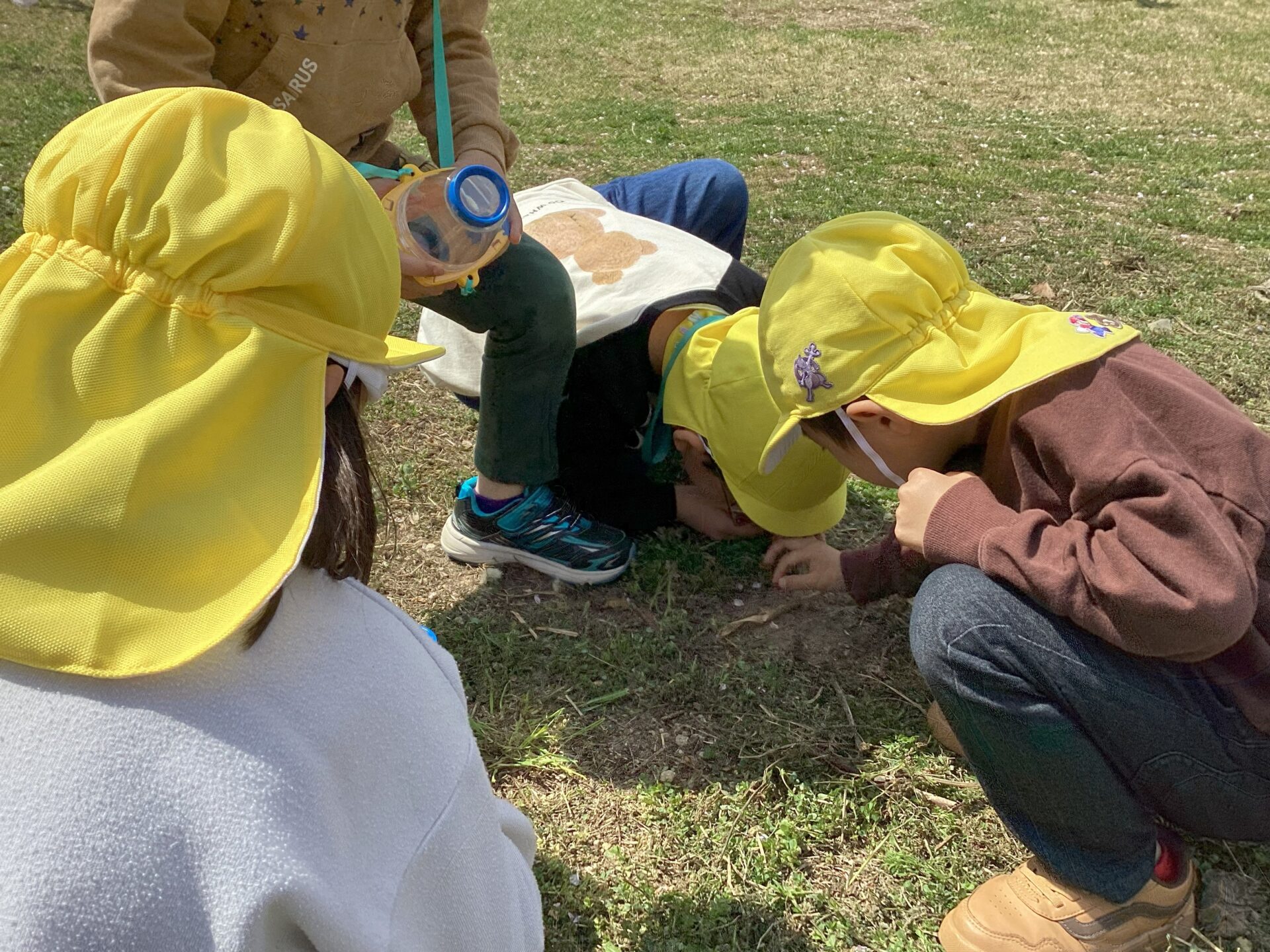 観察器を持って草花や虫を観察し、春探しに夢中です。