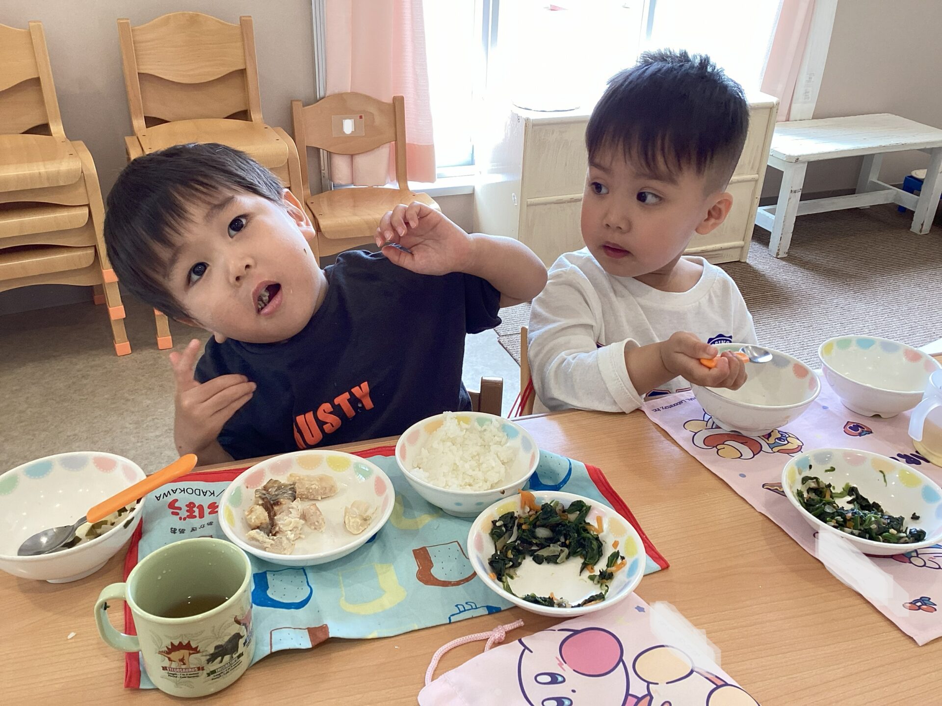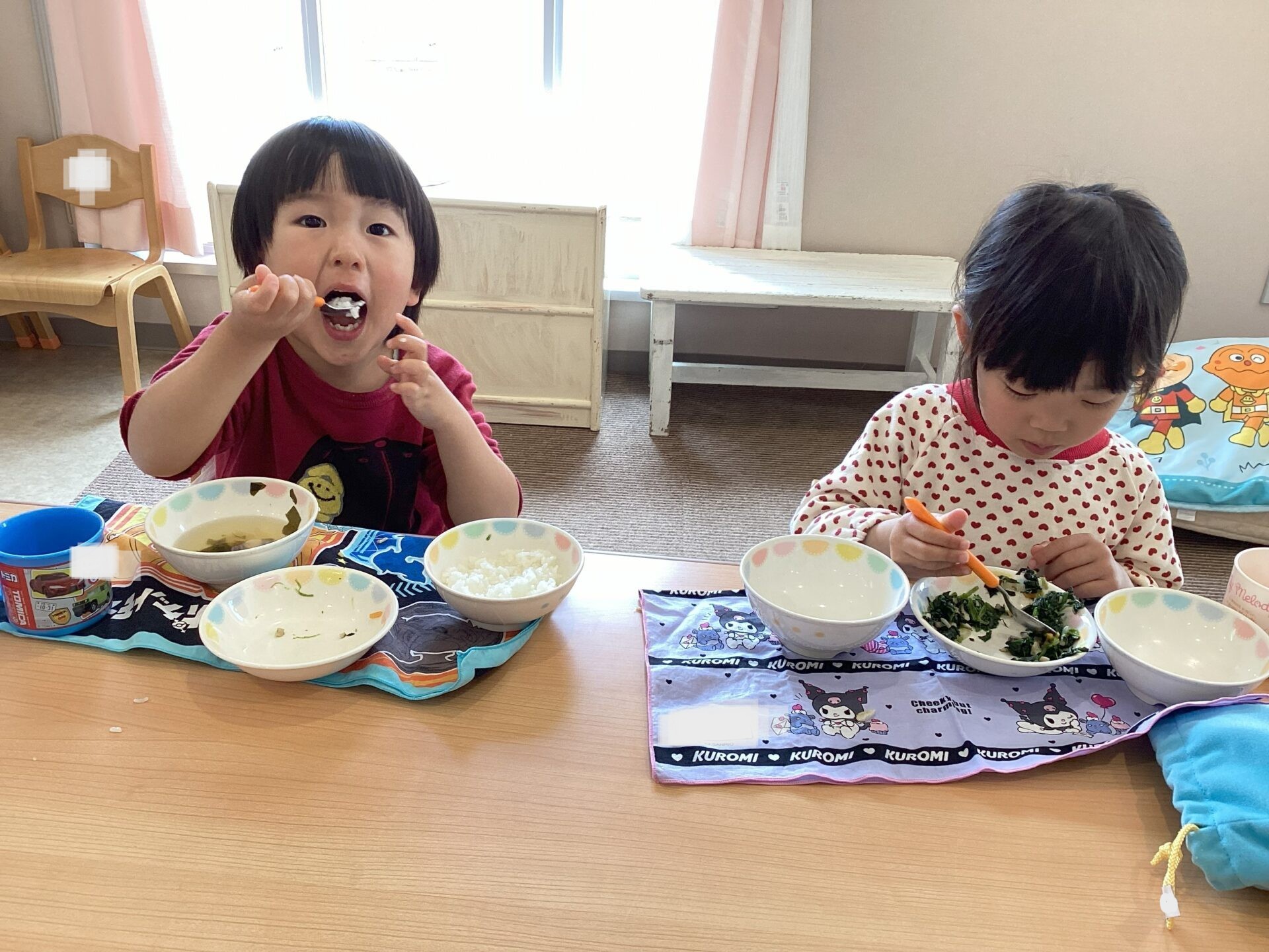 「できたよ!」「ナフキン出して…」