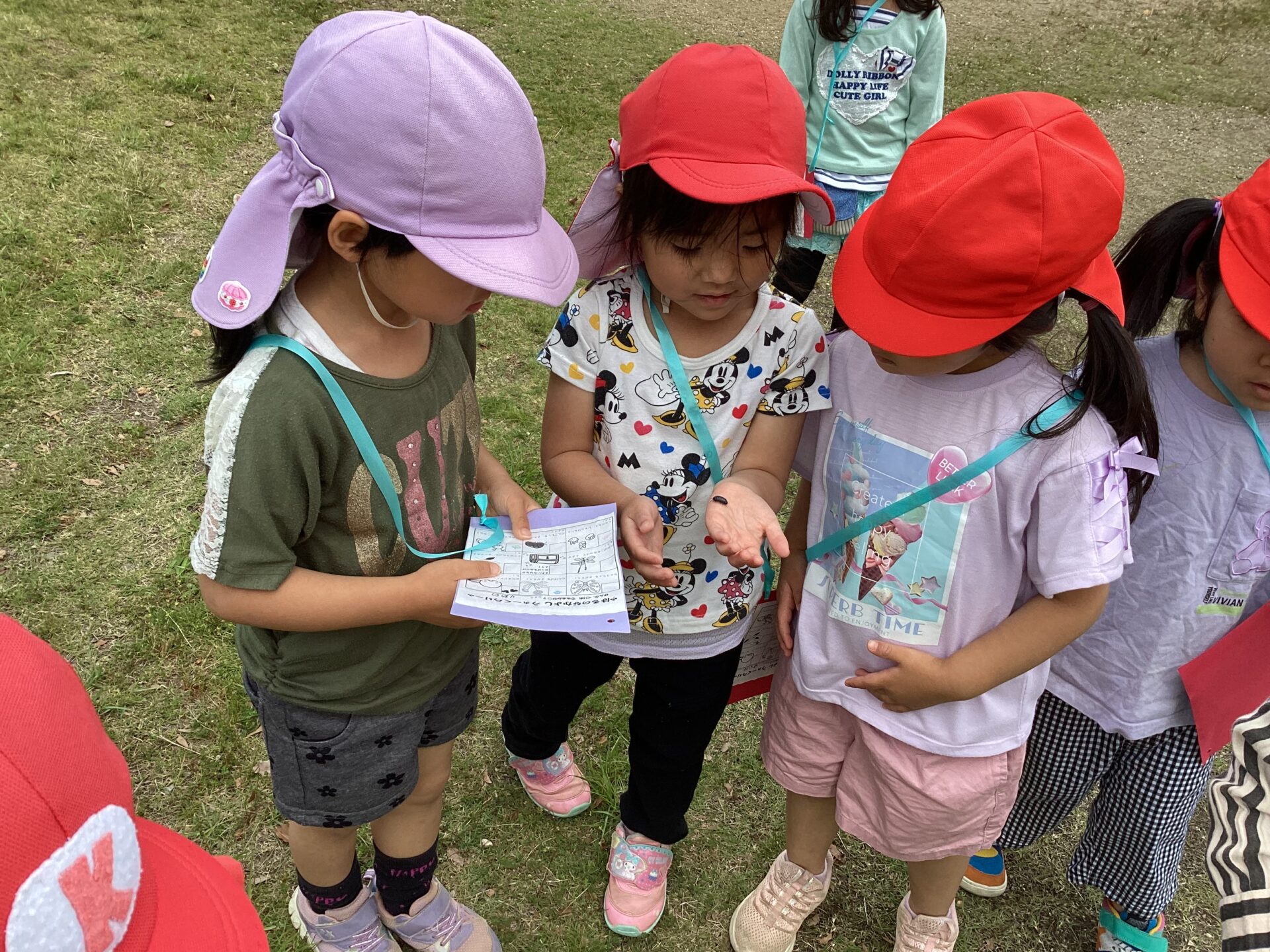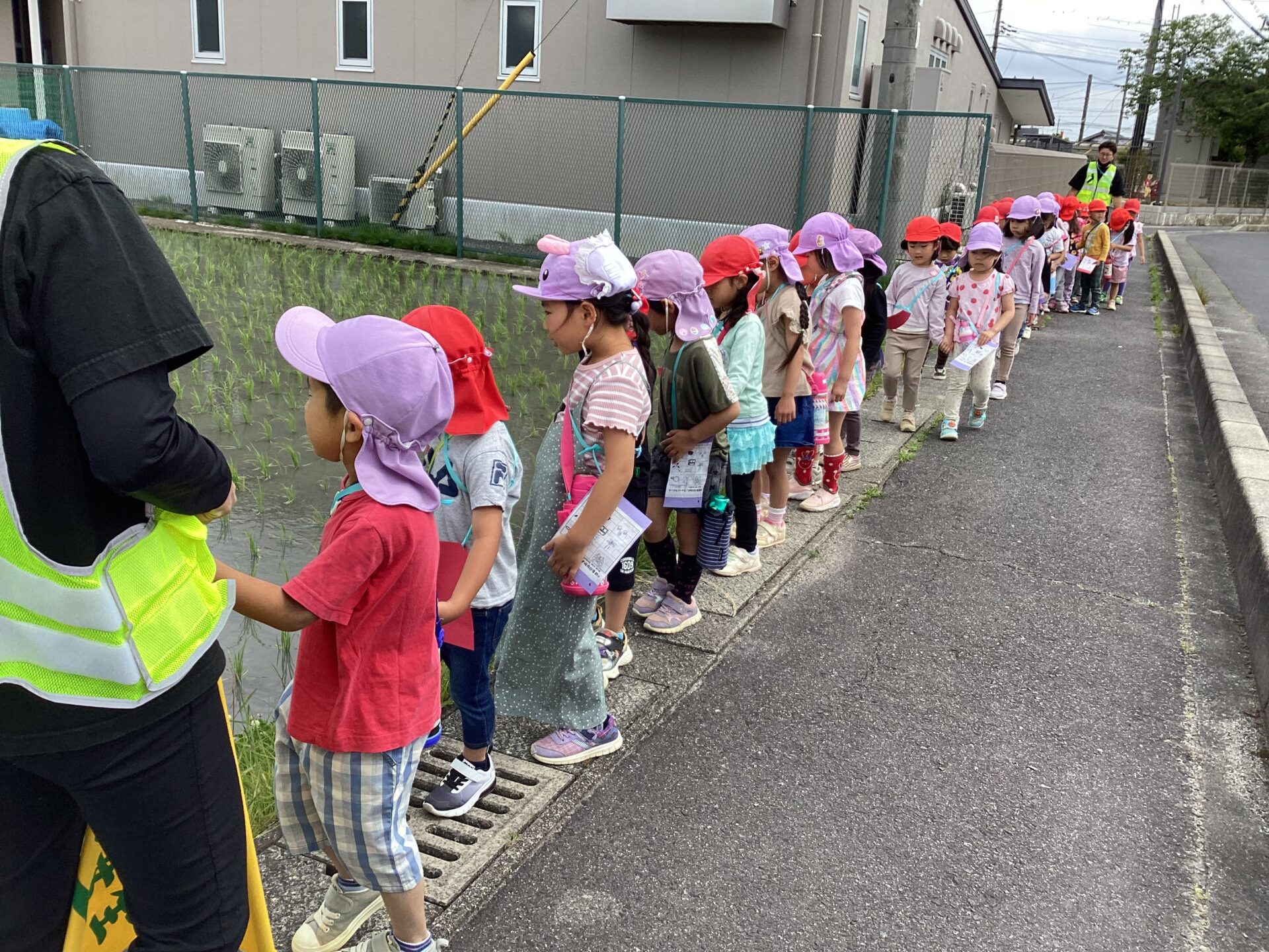 子ども達と保育園近隣の田んぼや、保育園の前にある上街道公園、通称「ローラー公園」へと向かいました。