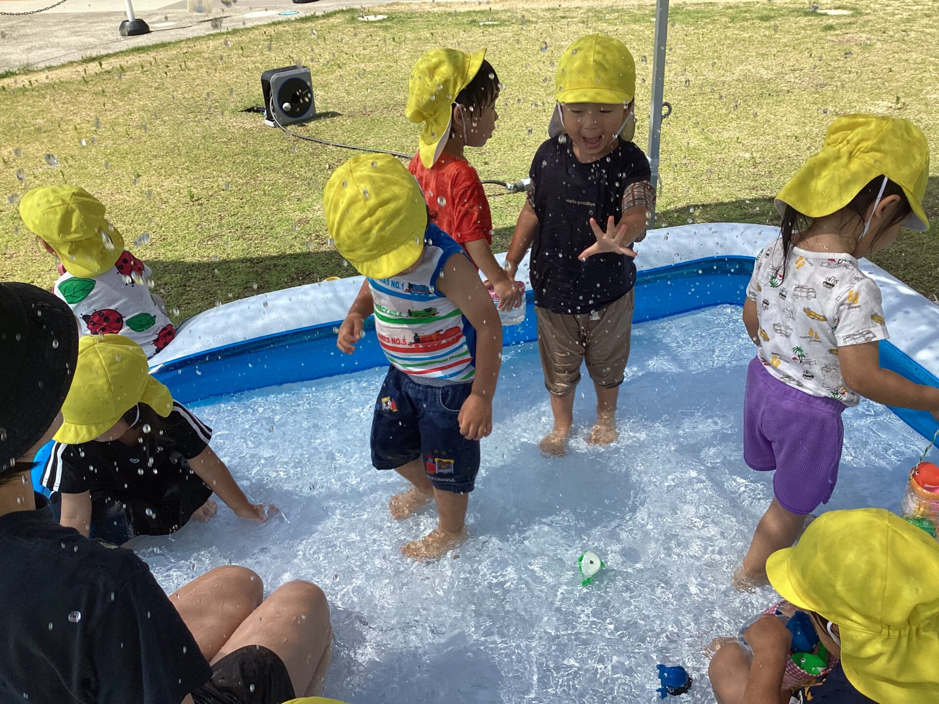 と、言いながら先生や友達と水をかけ合ったり・・・