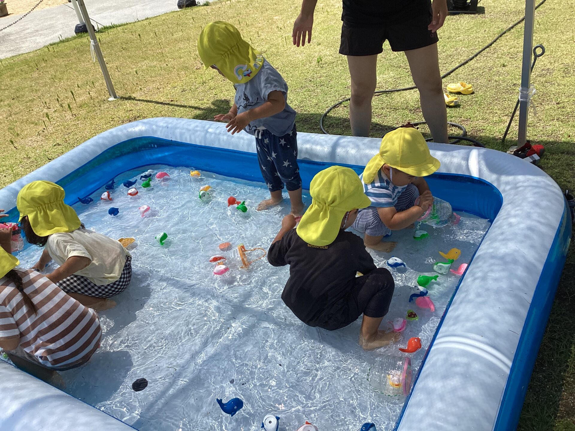 実際にプールに入り、遊んでいます😊