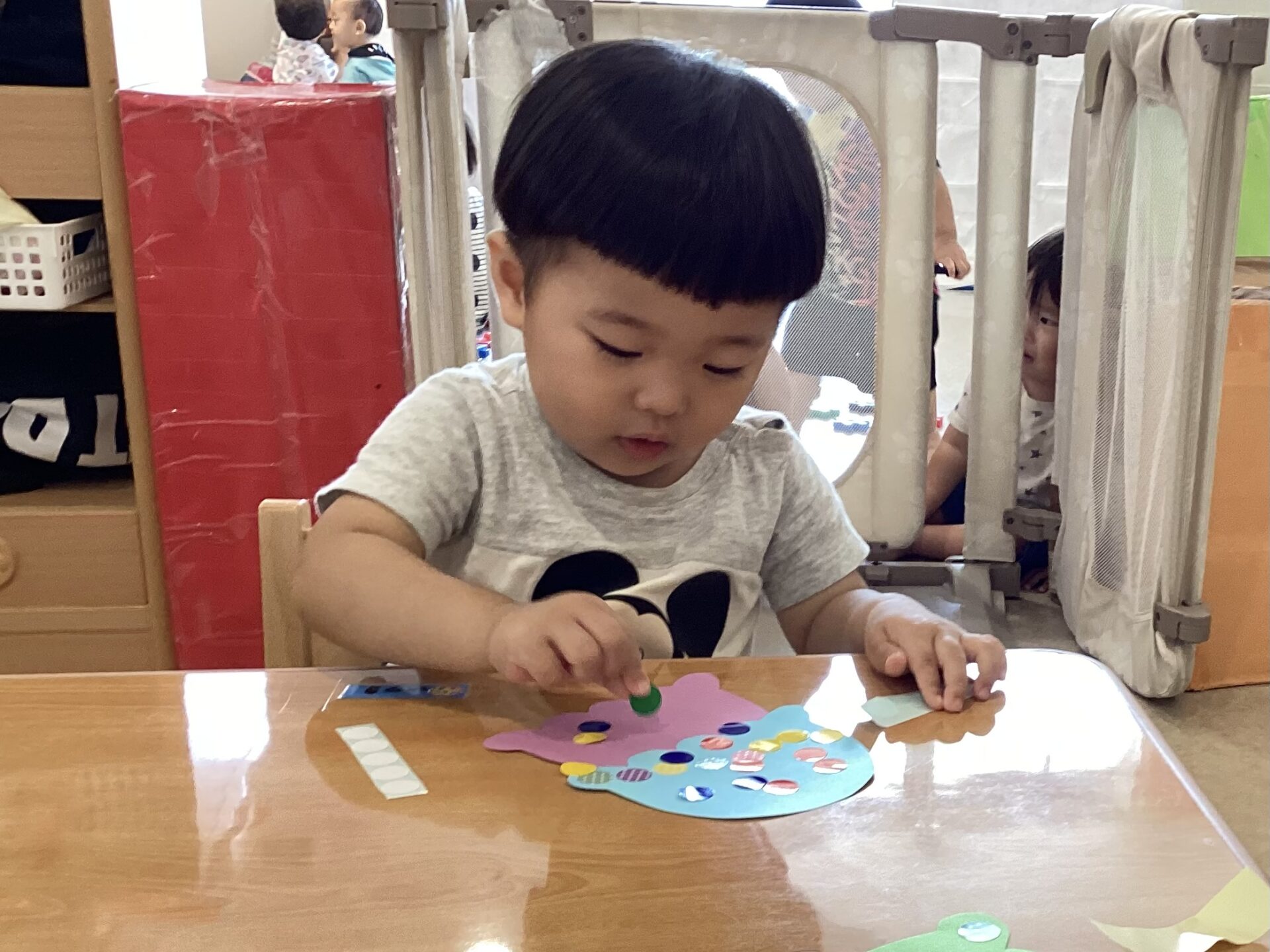 だいちチームでは、初めてのシール遊び。