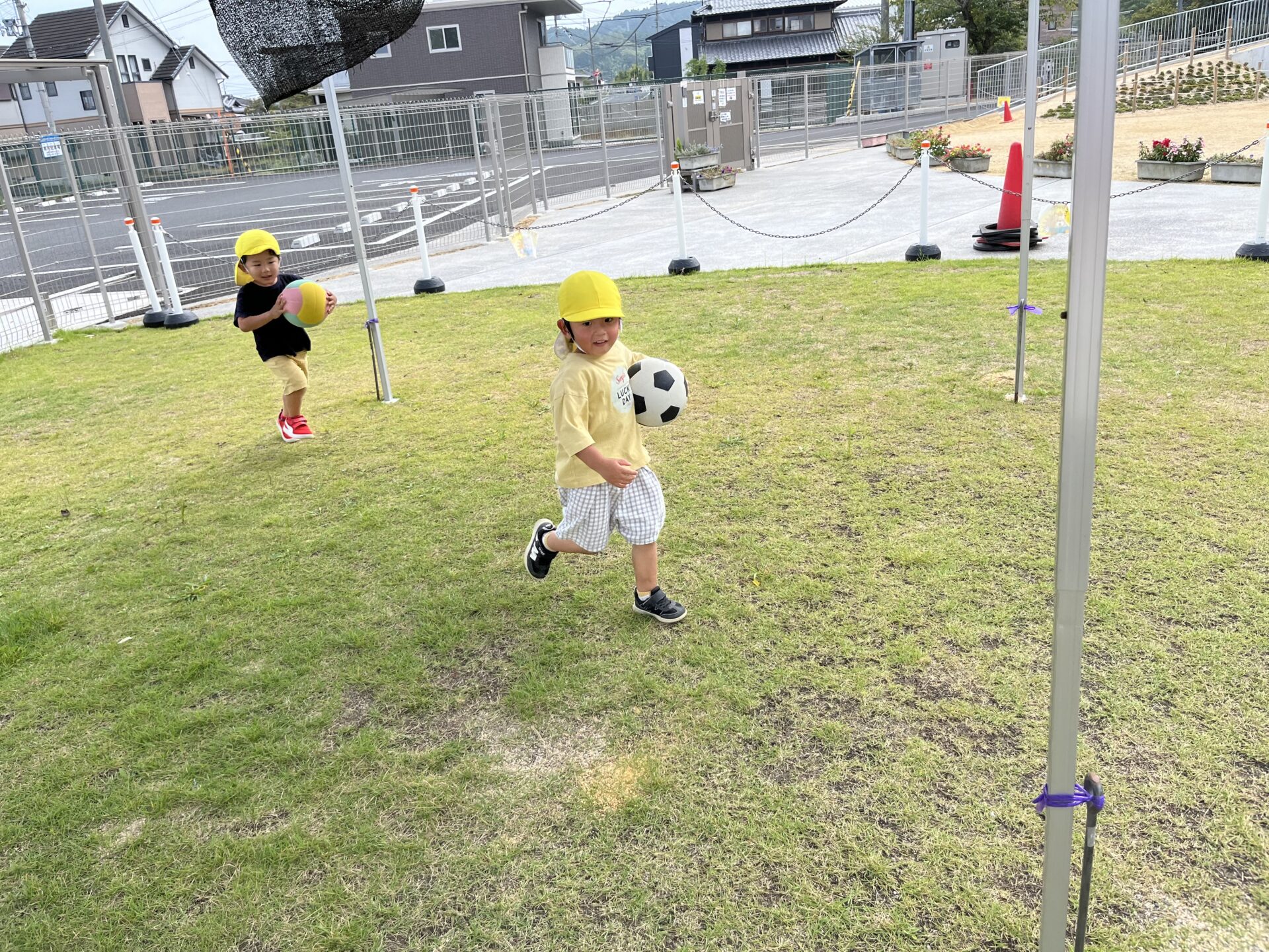 ボールを投げたり、蹴って体を動かしています✨