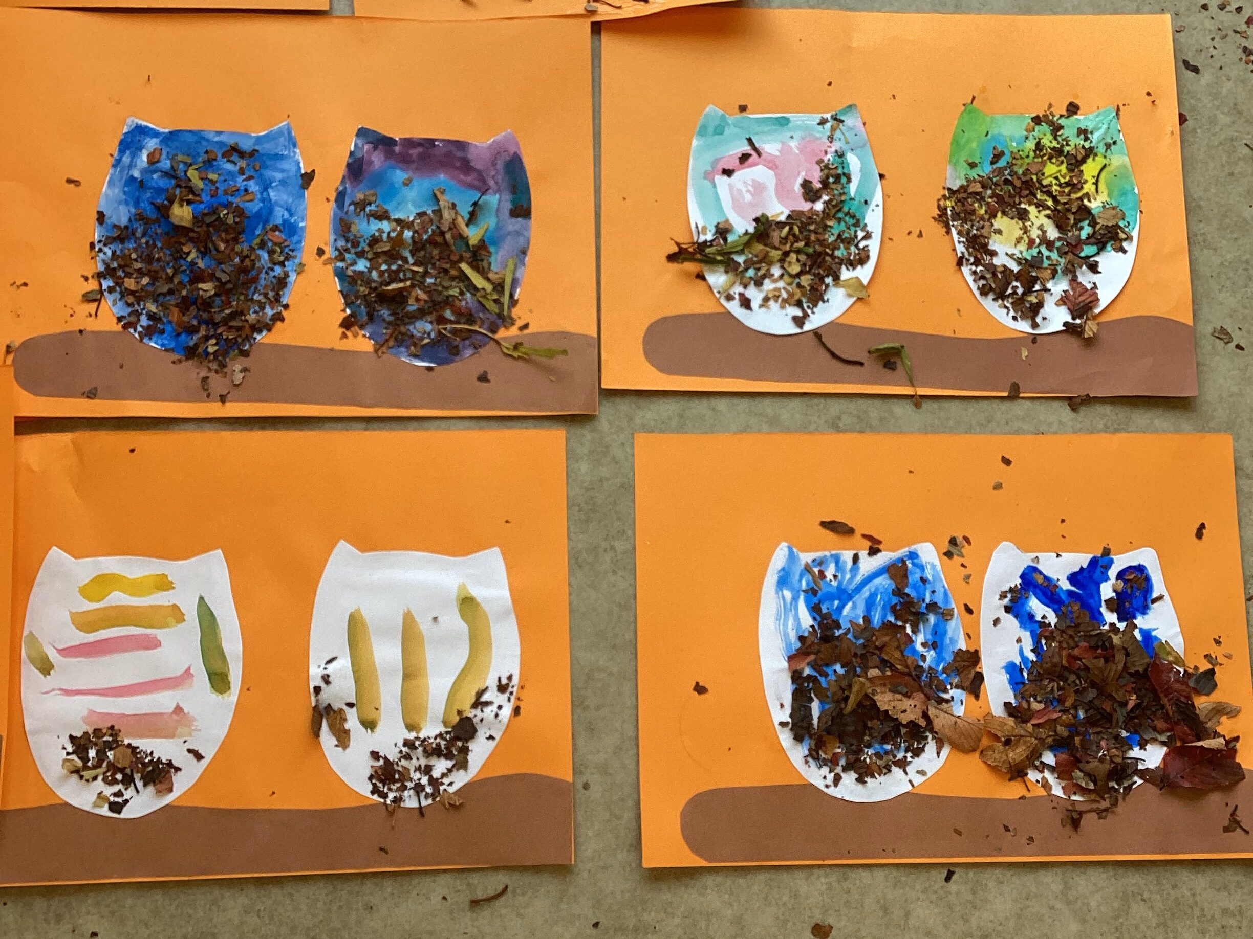 また後日には、沢山集めた落ち葉を使って制作をしました。