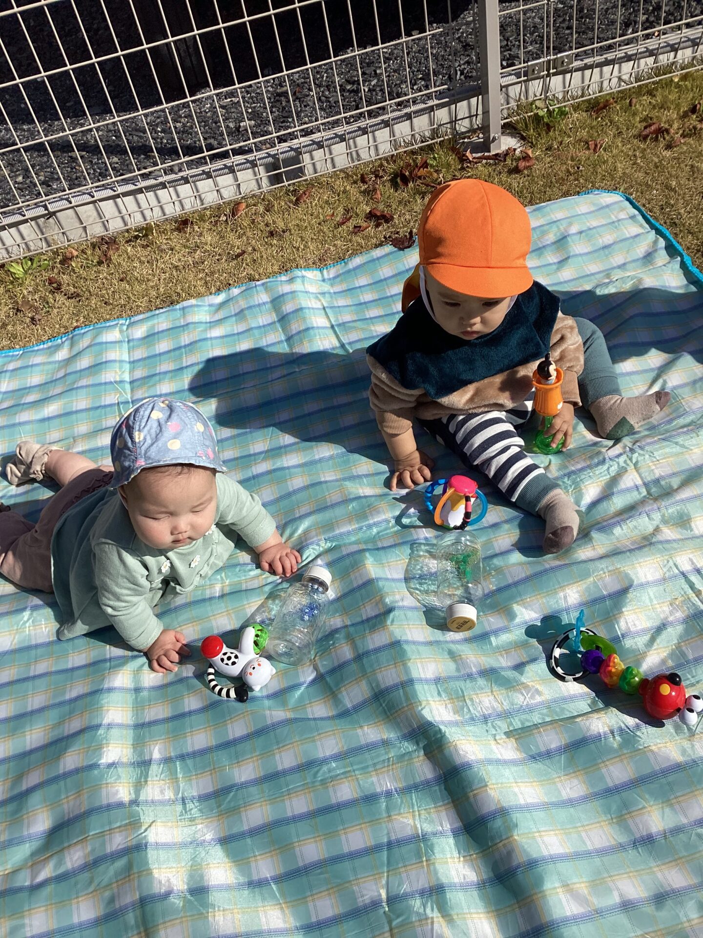 園庭の芝生にシートを敷く、日向ぼっこも大好きです!!
