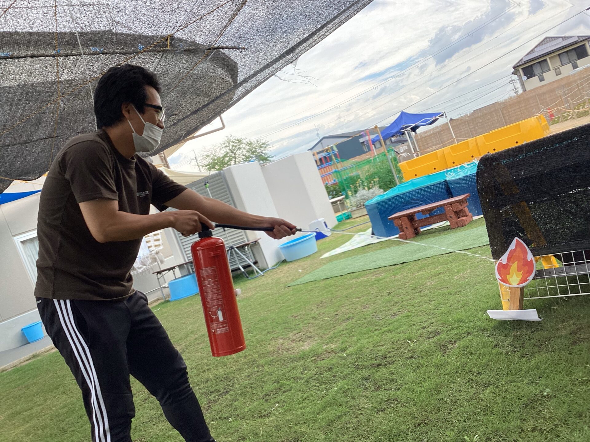 保育士等が、消火器を手にし、初期消火に向かいました。