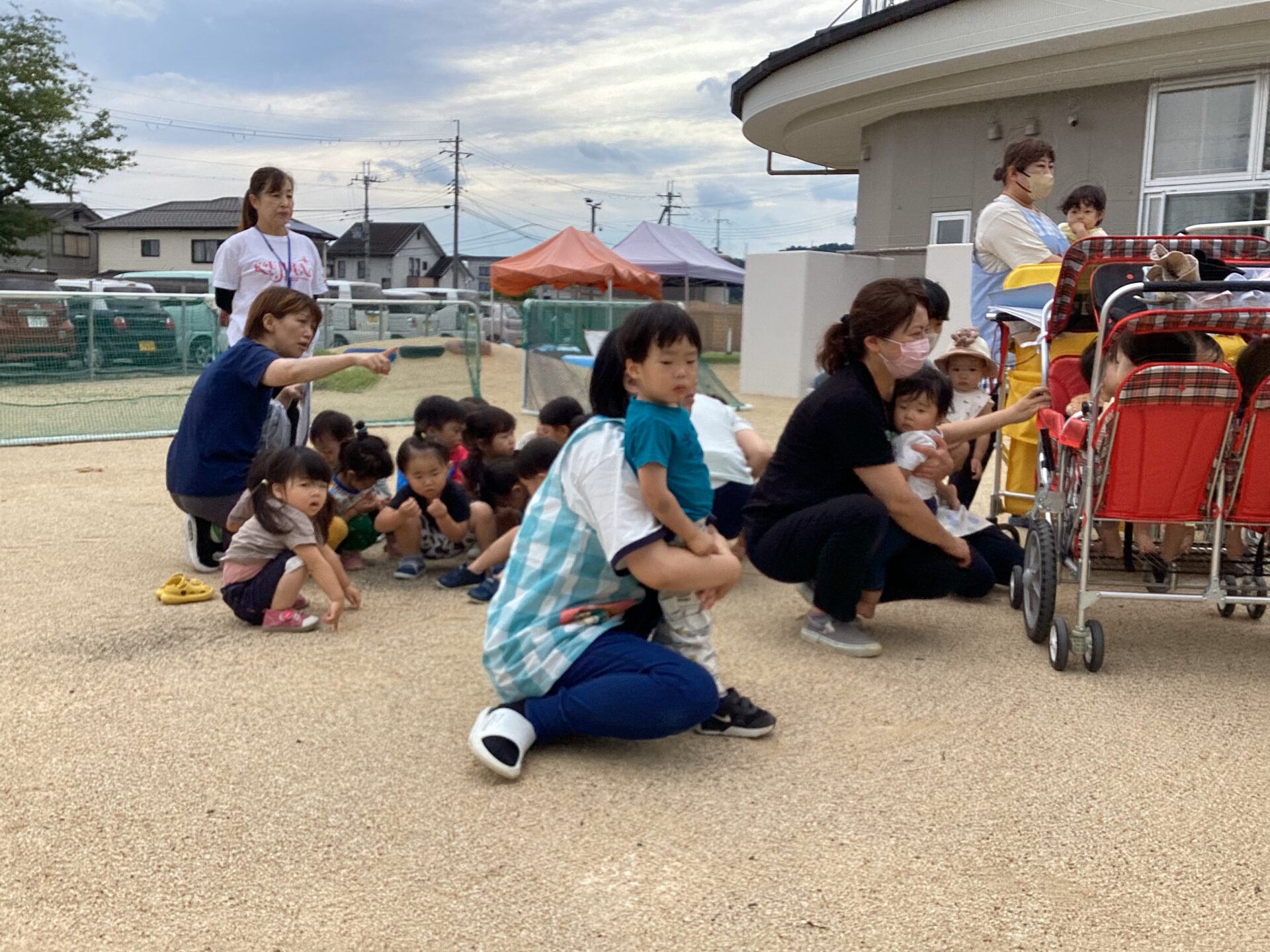 先日、保育園にて、地震を想定した避難訓練を行いました。