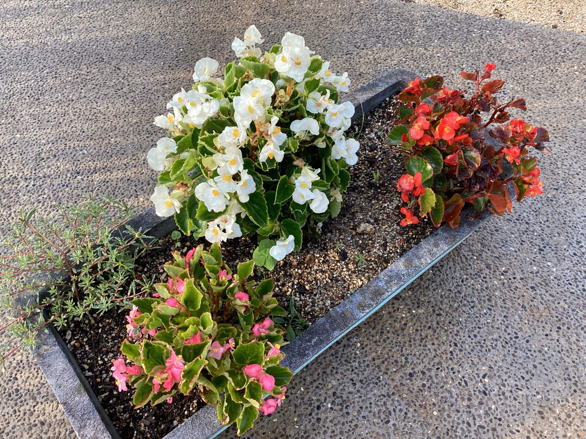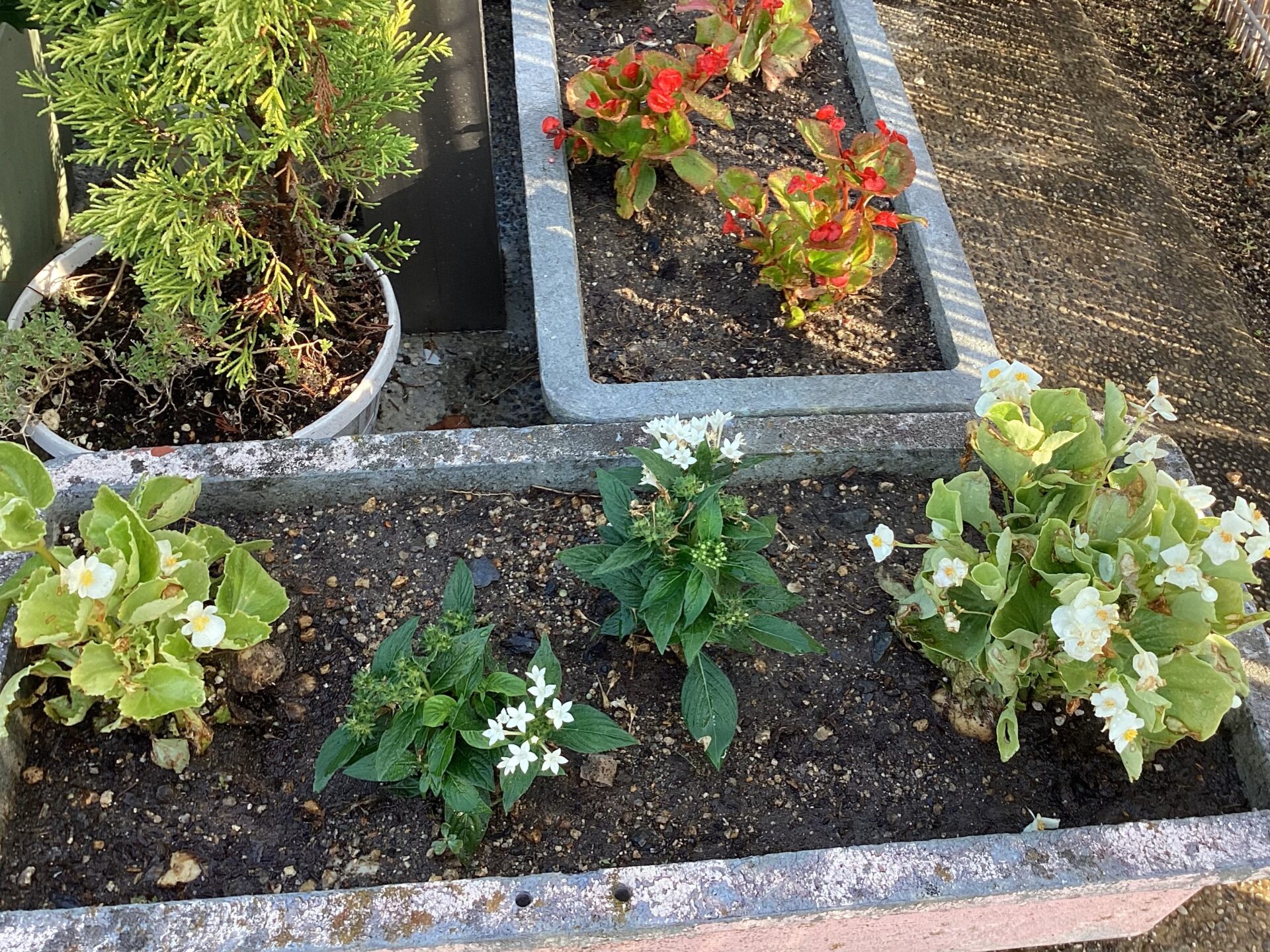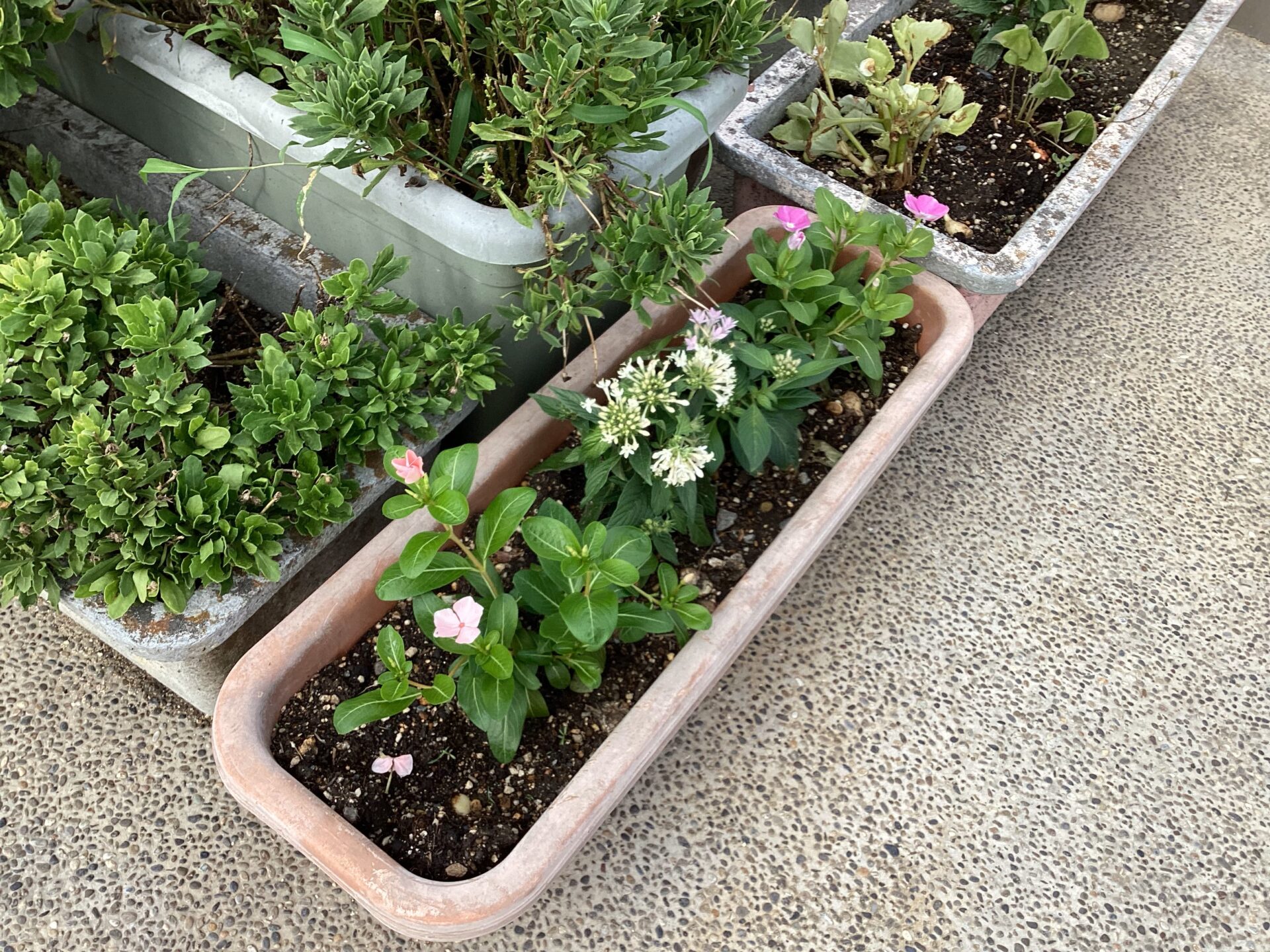色とりどりの綺麗な季節の花が、毎日 園児の登園を迎えています。