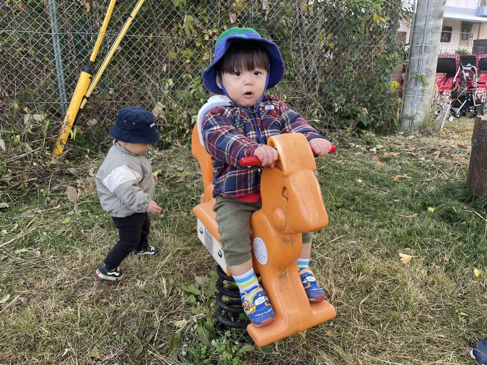 「リス公園」にはリスのスプリング遊具があり、しっかりと持ち手を握って、前後に ゆらゆら~。