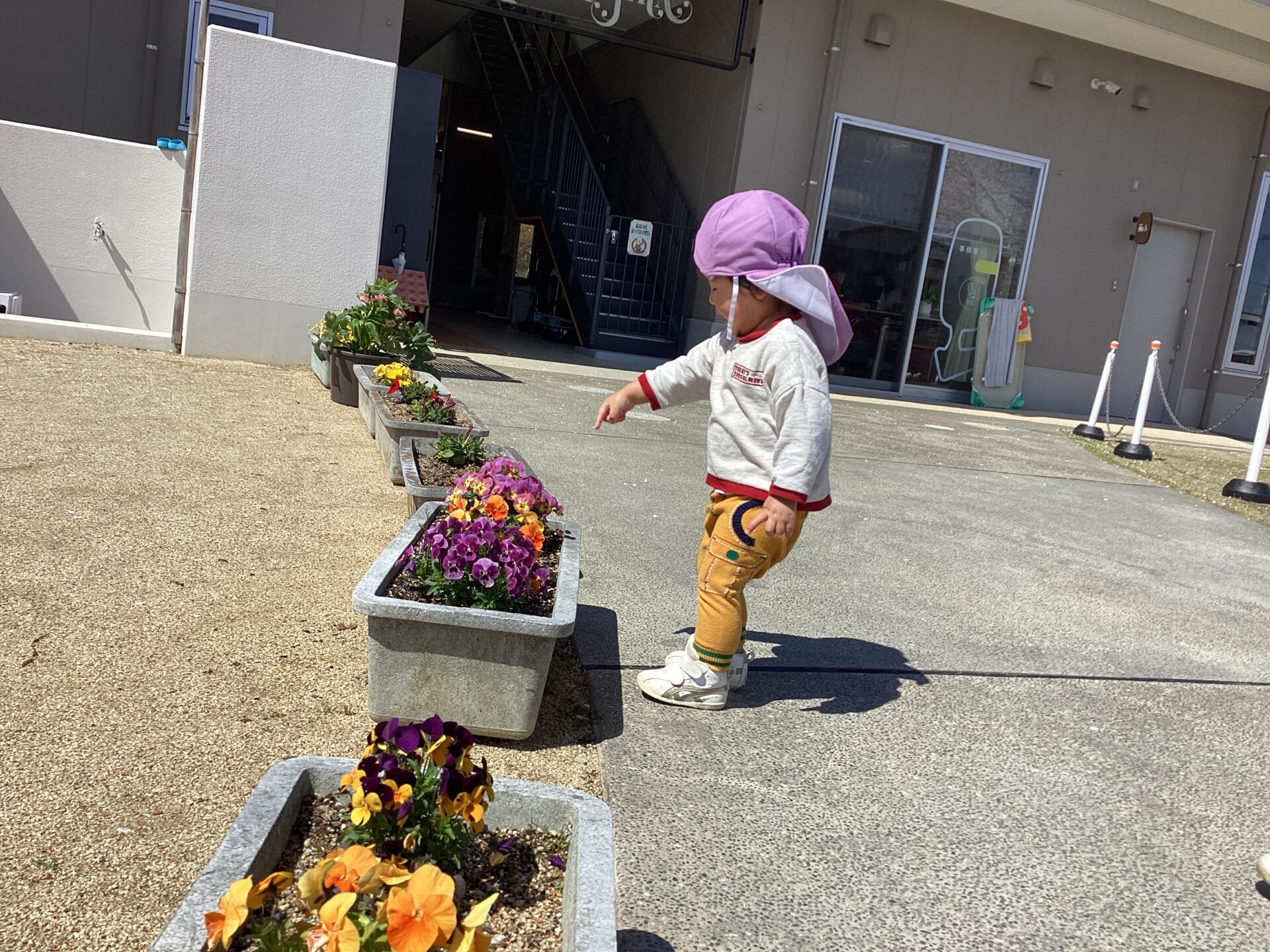 また桜以外にも、保育園の玄関にある花壇の周りを何往復も歩き、