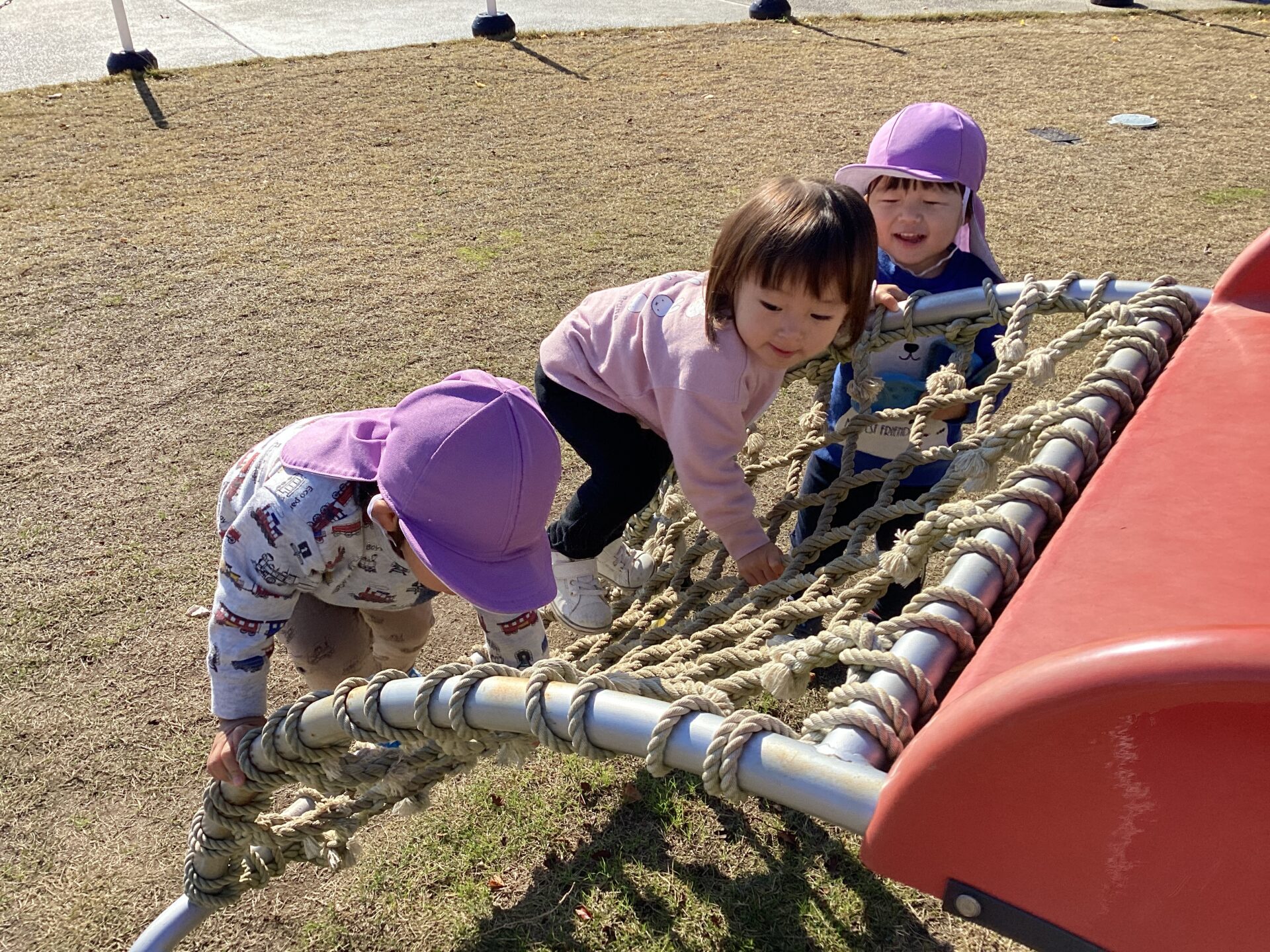 第3回にこにこくじらは、園庭で1歳児だいちチームの子どもたちと一緒に戸外遊びを楽しみました!