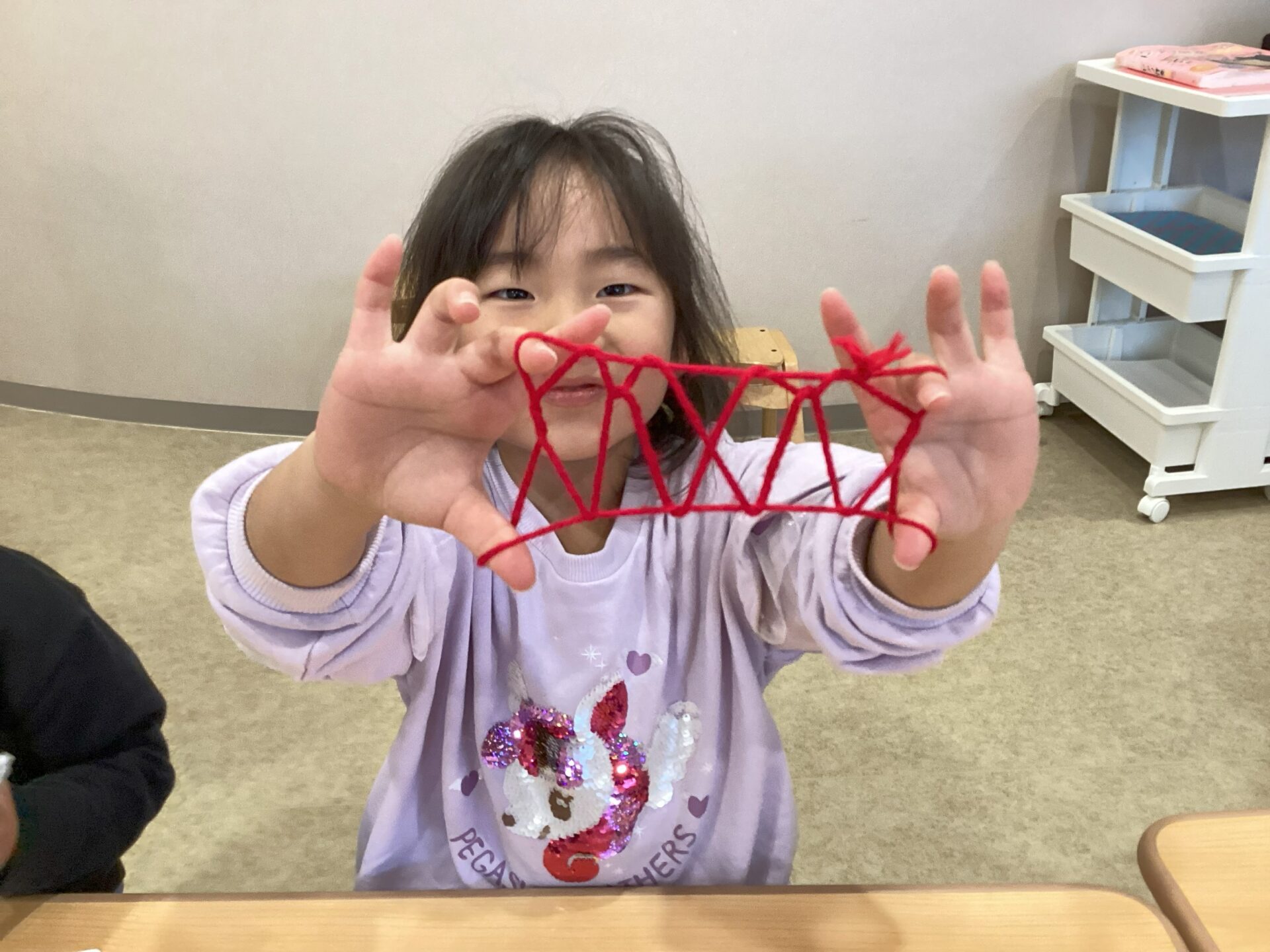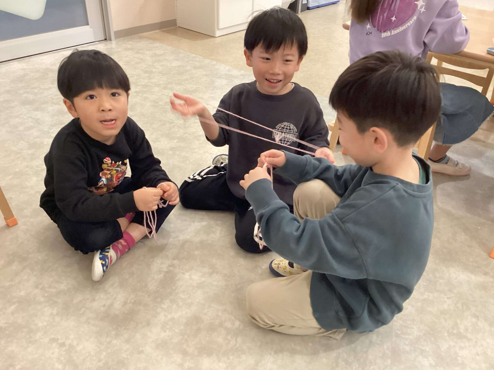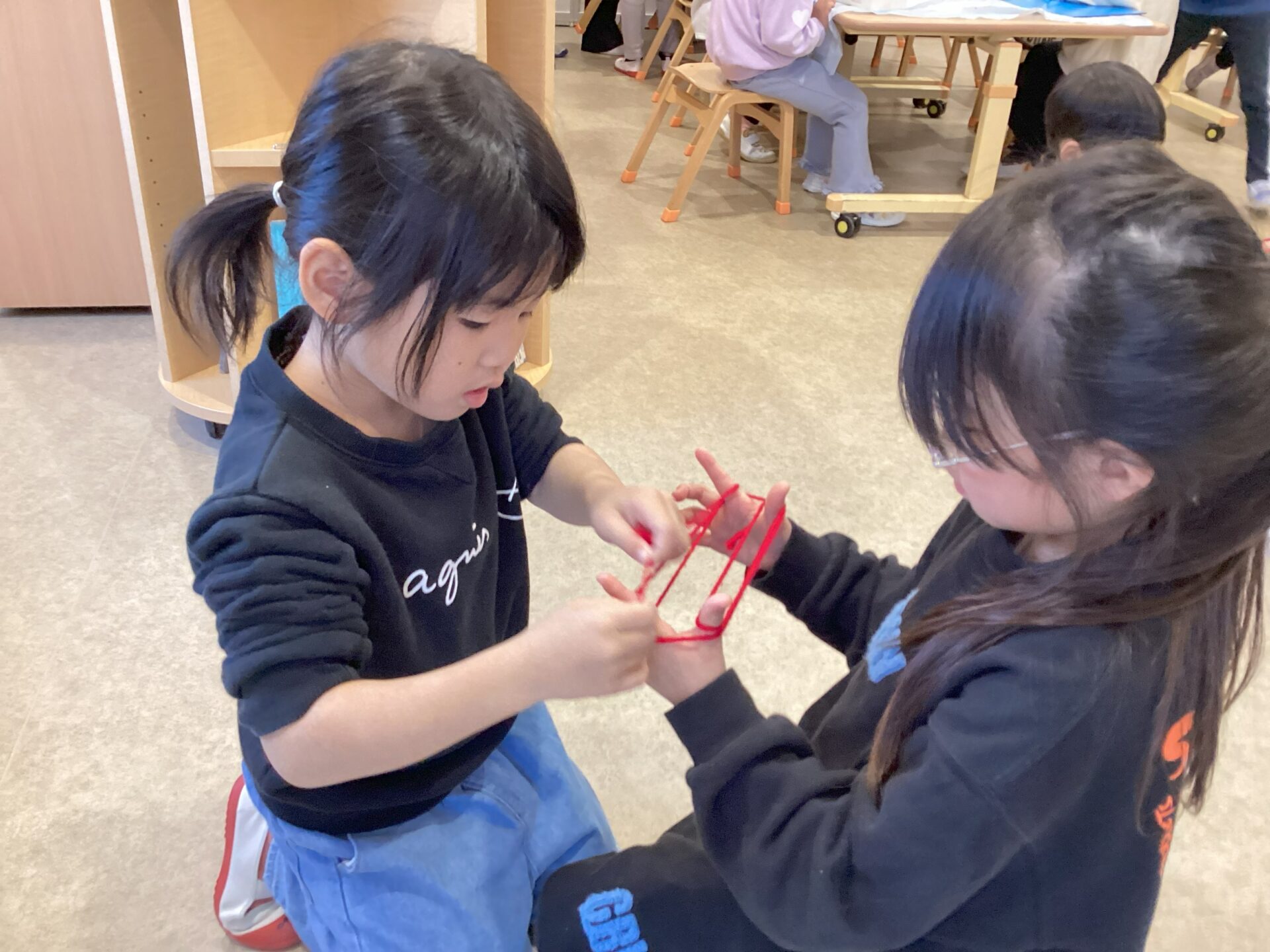 二人あやとりも出来るようになり、保育士や友達と一緒に